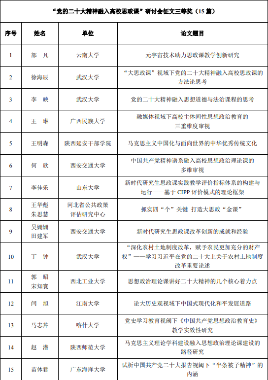 色情影片 关于“党的二十大精神融入高校思政课”研讨会自通知发布以来,得到了全国各高校师生的热烈响应,累计收到300多篇来稿,经主办方组织专家认真评审,现选出获奖论文45篇,其中一等奖5篇,二等奖10篇,三等奖15篇,优秀奖15篇。名单公布如下: