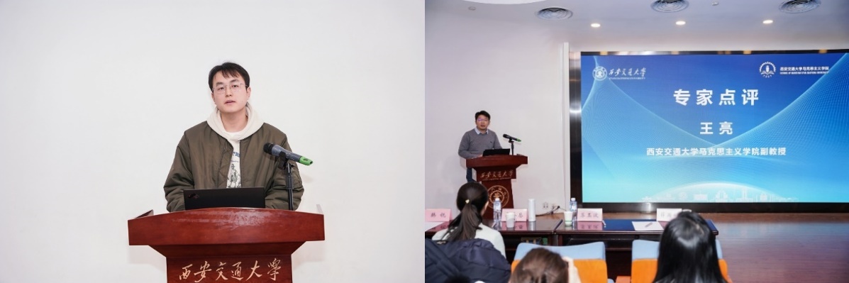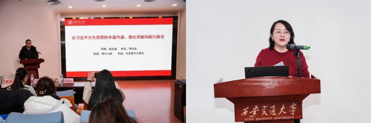 樊志远以《论习近平文化思想的丰富内涵、理论贡献和践行路径》为题,深入分析了习近平文化思想的丰富内涵,从三个方面着重阐述习近平文化思想的理论贡献,得出“坚持人民至上、坚持文化自信、坚持守正创新、秉持开放包容”四条习近平文化思想的践行路径。点评专家杜晓燕教授肯定了论文的底色、特色和亮色,并以此论文鼓励同学们做研究要有问题意识、交叉视角和国际视野。