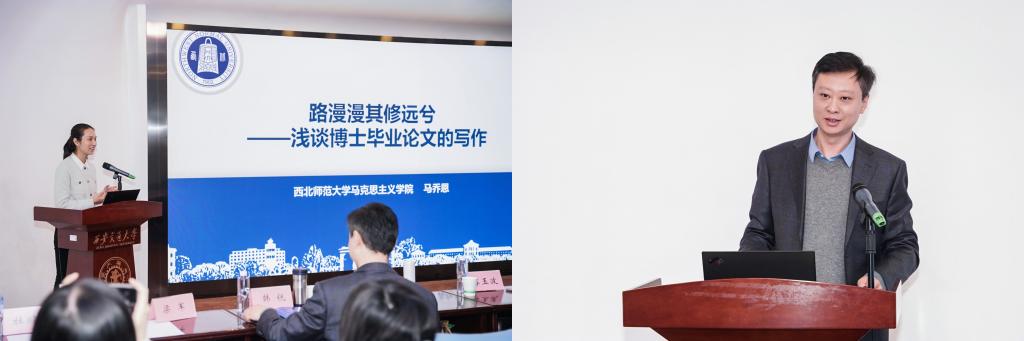 马乔恩结合自身经历,进行了题为《路漫漫其修远兮——浅谈博士毕业论文的写作》的报告。她强调博士论文写作要做好长期、中期和短期规划。从长期看,一方面要通过研读经典原著打好学术基础,另一方面通过多参会、多听讲座、多读期刊、多交学术朋友把握学术动态;从中期看,要从导师指导、学科方向、前期积累、研究旨趣、学科团队、研究价值等方面找到最大公约数,并多渠道发掘学术生长点,通过积累和聚焦确定最终选题;从短期看,要调整好写作节奏,做好长、中、短期写作计划,做好精力分配和情绪管理,写作中要严把每个细节,体现出专业和诚意。她还特别强调学生必须要和导师在选题及写作过程中建立良好的沟通和互动关系,充分发挥导师指导的强大助力作用。