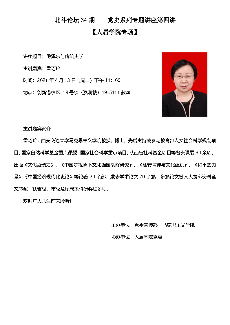 【讲座预告】北斗论坛34期----党史系列专题讲座第四讲【人居学院专场】