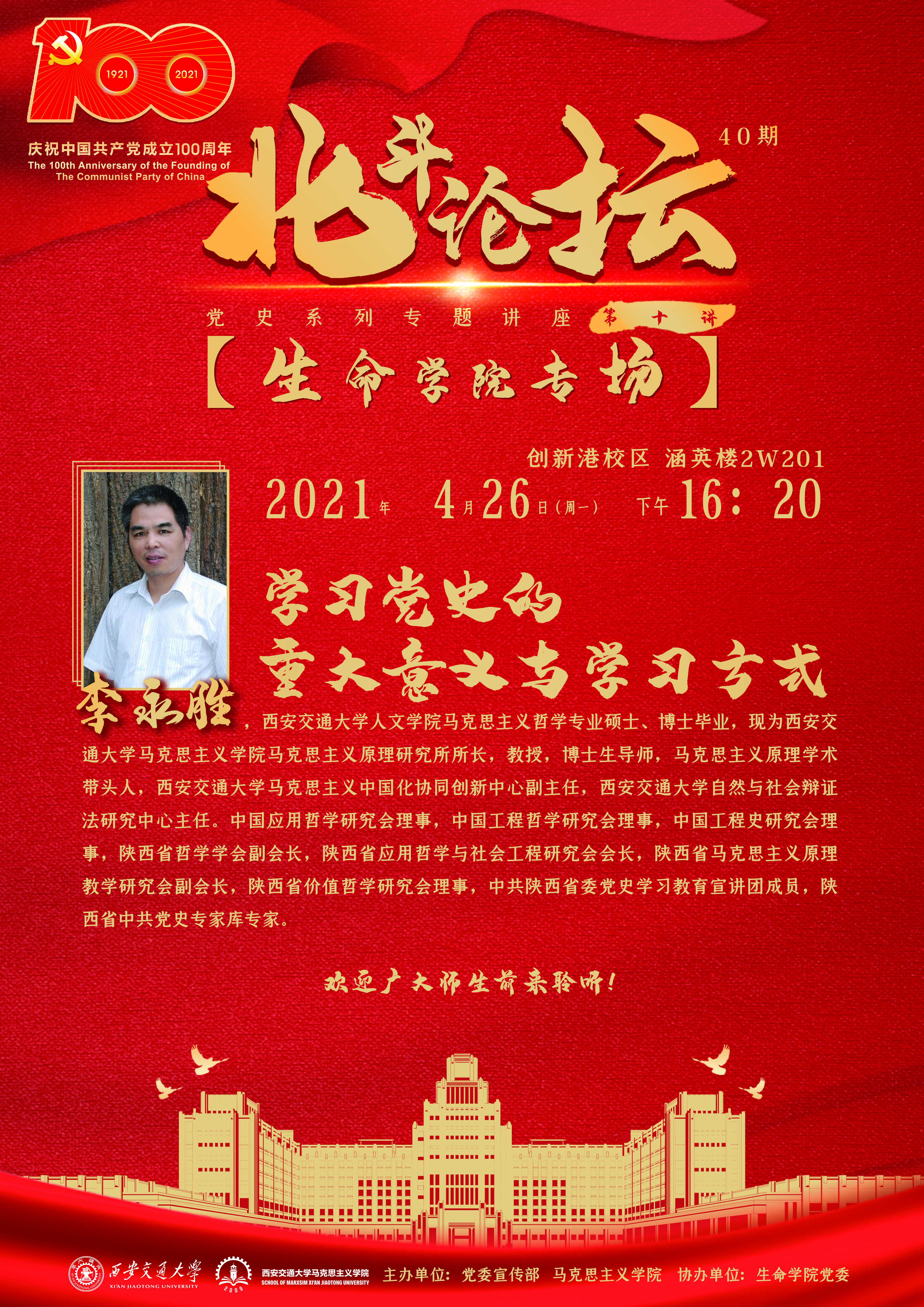 【讲座预告】北斗论坛40期----党史系列专题讲座第十讲【生命学院专场】