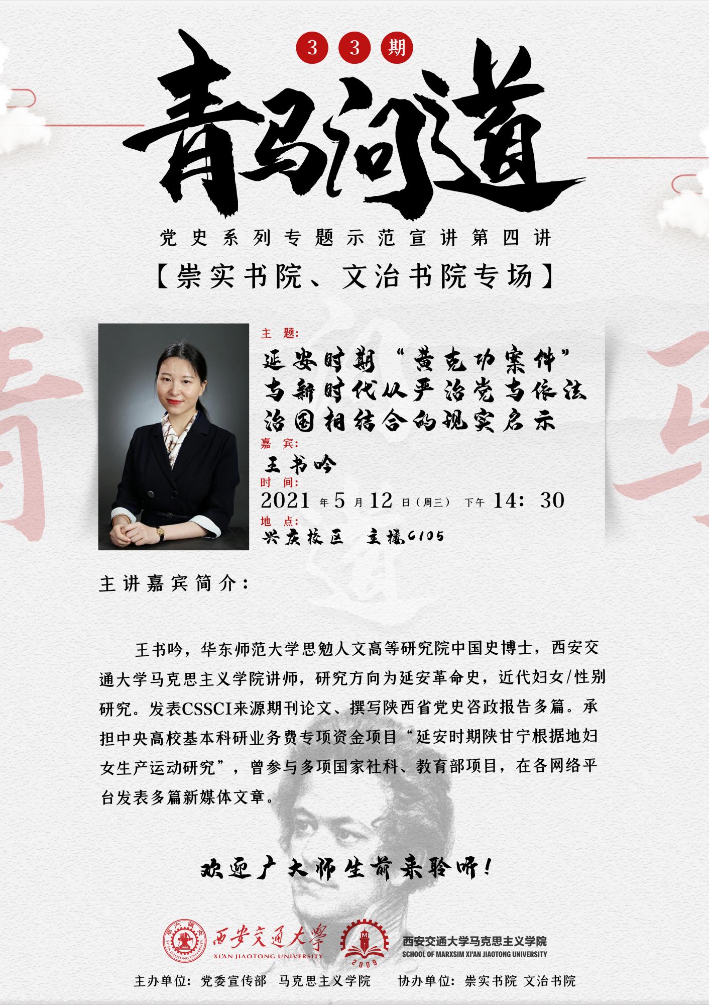 【讲座预告】青马问道33期----党史系列专题示范宣讲第四讲【崇实书院、文治书院专场】