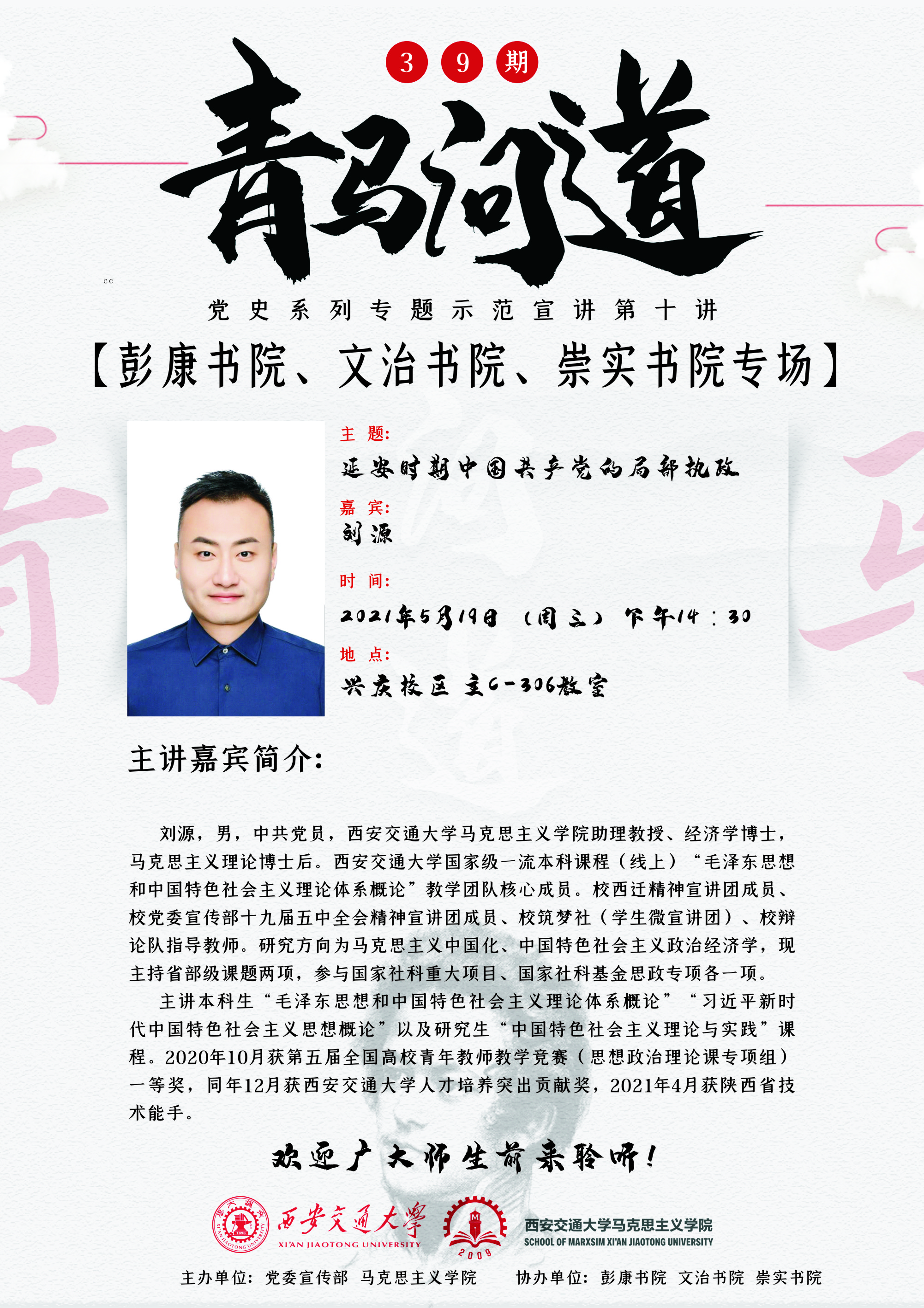 【讲座预告】青马问道39期----党史系列专题示范宣讲第十讲【彭康书院、文治书院、崇实书院专场】