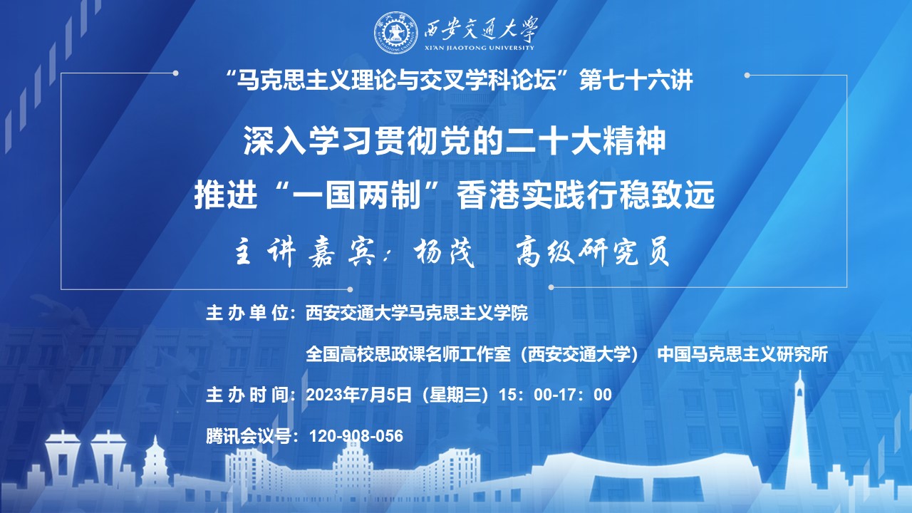 讲座题目:深入学习贯彻党的二十大精神,推进“一国两制”香港实践行稳致远