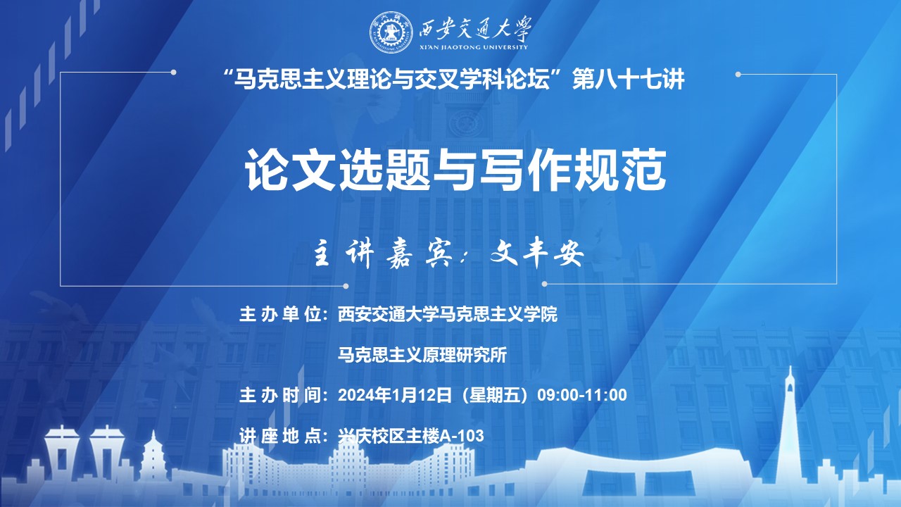 【讲座预告】“马克思主义理论与交叉学科论坛”第八十七讲
