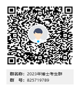 QQ群:请考生报名后关注报名系统的材料审核信息,审核通过后,以”2023-统招(两课专项)-姓名-**教授(导师姓名)“申请加入QQ群,群号:825719789