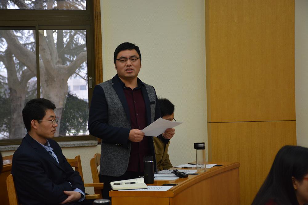 会议开始,学院党委副书记宋永平老师首先带领参会师生学习了文件精神,随后王宏波院长率先发言谈学习体会。接着朱旭、范玉仙、金新、申涛四位青年教师代表对“十三五”规划的建议发表感想。朱旭老师表示,在两万多字的“十三五”规划建议中,有近三千字论述中国目前面临的国际环境和中国的对外战略,规划有关“开放发展”的战略新思想涵盖了中国参与全球治理、推进“一带一路”等要点,因而,我们学界需要加大对重大国际问题的深入研究,为中国参与国际规则制定建言献策,牢牢掌握话语权,获得国际社会的广泛认可。金新老师表示,为推进“一带一路”建设,我们需秉持亲诚惠容,坚持共商共建共享原则,打造陆海内外联动、东西双向开放的全面开放新格局,加强同国际金融机构合作,吸引国际资金共建开放多元共赢的金融合作平台。