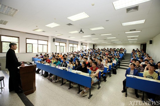 “张书记的课堂没有PPT,没有冗长的讲稿,但一个半小时的讲授却一气呵成、结构严谨,看得出他为了这堂课做了精心的准备。课堂内容很有思想高度,引领我们将培养自身素质上升到建设交大、为祖国发展做贡献的高度,让我们真切感受到重任在肩、时不我待。”电气管硕42班的赵科听完课感触颇深。