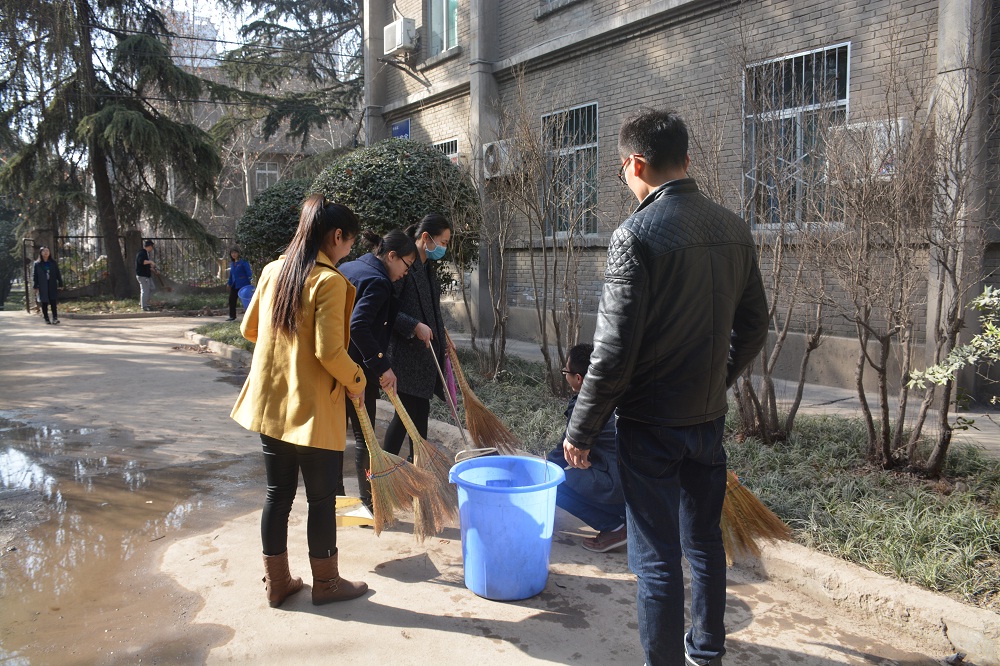 研究生主动承担了西1学生宿舍楼的卫生清理工作,学生处刘轩麟老师及物业处老师在现场指导大家工作。活动开始,同学们分工协作,大家对1层至4层的死角和污渍进行了认真细心的清理,并且清理了平时很难打扫的绿化带草坪。各个部门人员按照被分配的区域认真清扫,活动有条不紊的进行着。打扫期间大家将自己对校庆的期待注入行动中,认真打扫校园的每一个角落。在随后对绿化带的清理过程中,同学们积极出谋划策,想方设法,虽然尘土飞扬,但依旧保质保量的完成了绿化带的清理任务,对此,学生处老师及物业处老师赞不绝口。同时,同学们也十分感谢学工组耿嘉敏老师为大家准备的防尘口罩。