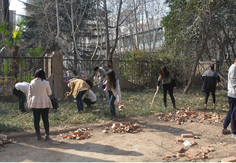 园,从我做起”的观念进一步加深,同时,劳动中的分工合作,也进一步增强了同学们的友谊和团队合作意识、集体意识和贡献意识。同学们个个精神饱满,在新的一年里精神焕发,阔步前行,喜迎校庆的到来!