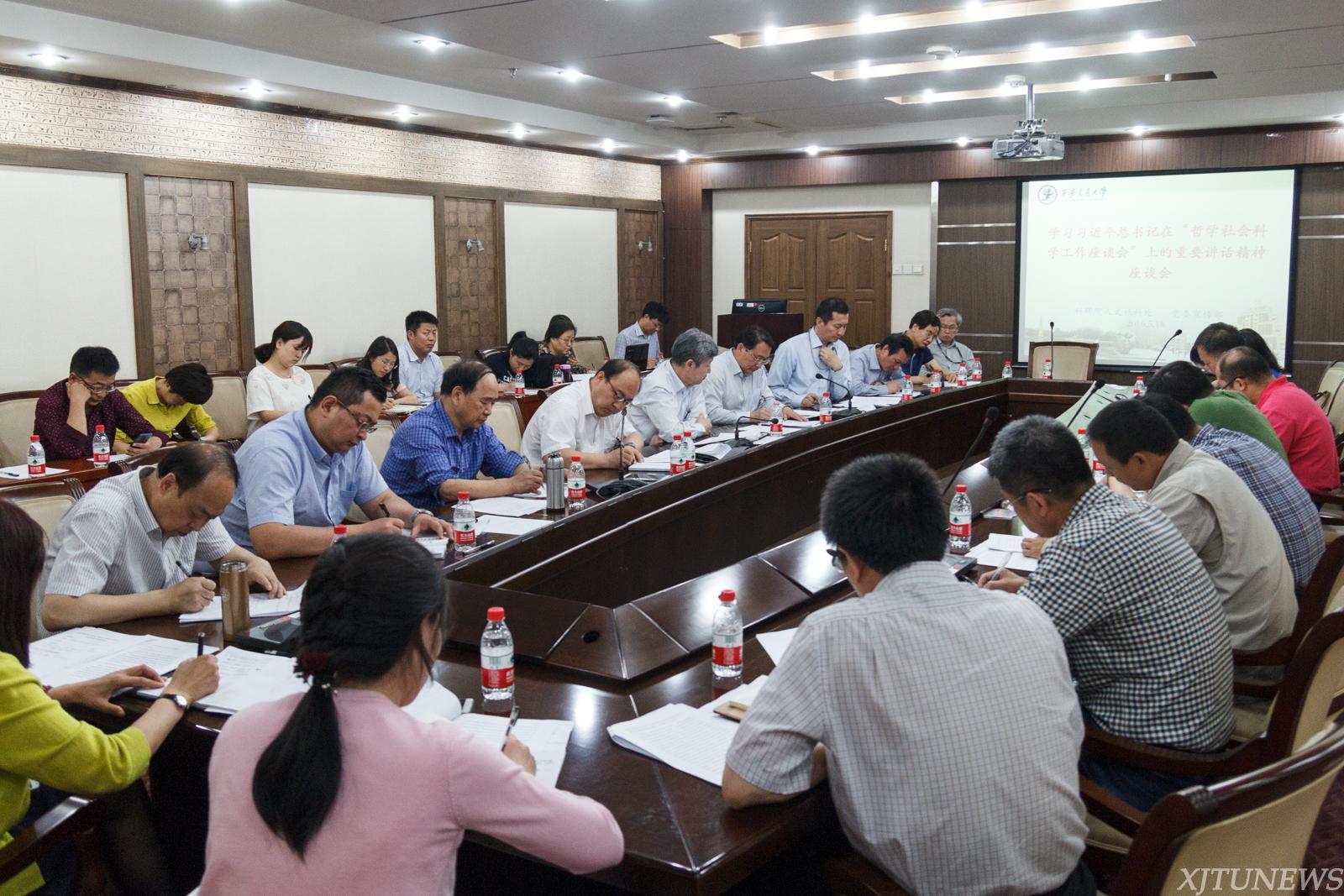 5月17日,习近平总书记在京主持召开哲学社会科学工作座谈会。他强调,坚持和发展中国特色社会主义,哲学社会科学及其工作者具有不可替代的重要作 用,必须高度重视哲学社会科学,结合中国特色社会主义伟大实践,加快构建中国特色哲学社会科学。18日,校党委宣传部、人文社科处联合召开专题学习会,相 关学院院长、教授、青年教师代表展开座谈,畅谈学习体会、为繁荣发展哲学社会科学建言献策。党委书记张迈曾、副书记宫辉出席会议,席光副校长主持会议。