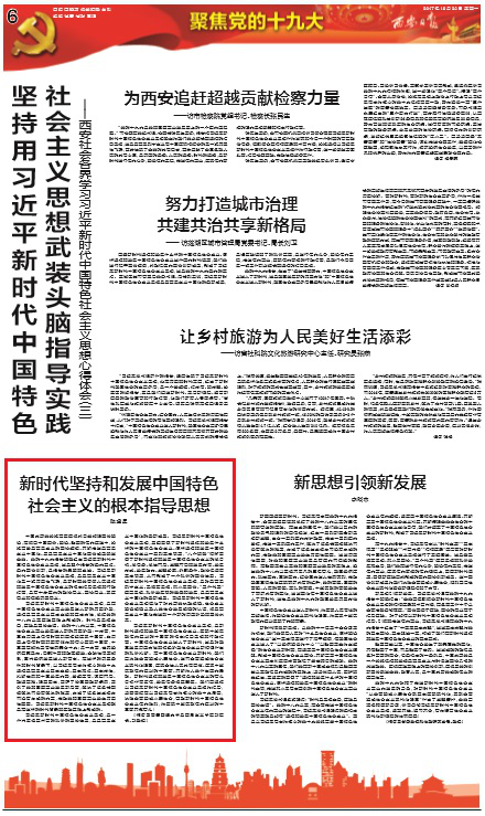 十九大开幕以来,《西安日报》特开设了“聚焦党的十九大”版面,编发了一系列西安社会各界学习习近平新时代中国特色社会主义思想心得体会。10月23日,刊发了色情影片