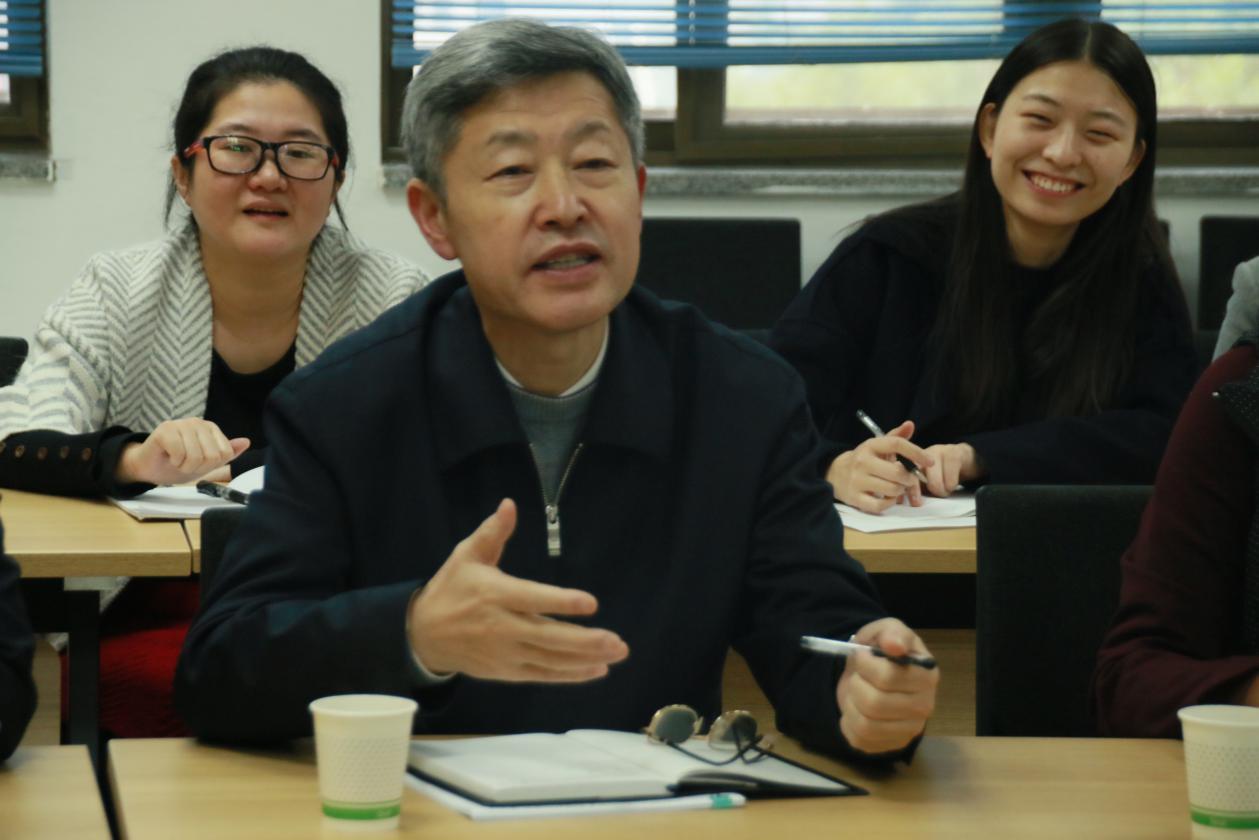 会议讨论期间,每位发言人根据自己的研究领域,结合自己的研究方向和教学工作实践,展开了热烈的研讨。陈建兵老师从习近平总书记提出的新时代中国特色社会主义思想的如何逐章进《毛泽东思想和中国特色社会主义理论体系概论》课的教材和课堂;陆卫明老师从混合式经济模式,党的领导、人民当家做主和依法治国三位一体政治模式,中华优秀传统文化、中共领导革命文化、中国特色社会主义先进文化三个支点支撑的文化模式等方面阐释了当代中国社会主义发展模式及其特征;任培秦老师重点就十九大报告中从严治党的思想进行深入解读和分析新时代党的建设中的新思想、新论断和新方略;刘静老师从大国心态、大国责任、对外开放战略和中国特色大国外交方面谈了对十九大报告精神的体会;王永香老师结合自己的教学和科研,认为要以课题为依托贯彻“三进”工作;李娟老师从十九大报告中依法治国视角讲述中国走什么样的法治道路、法治为谁服务和怎样建设中国法治道路;博士生代表冯亮谈了学生支部如何助力“三进”工作。会议中,孙宝玉书记总结了各位发言人的观点和看法。
