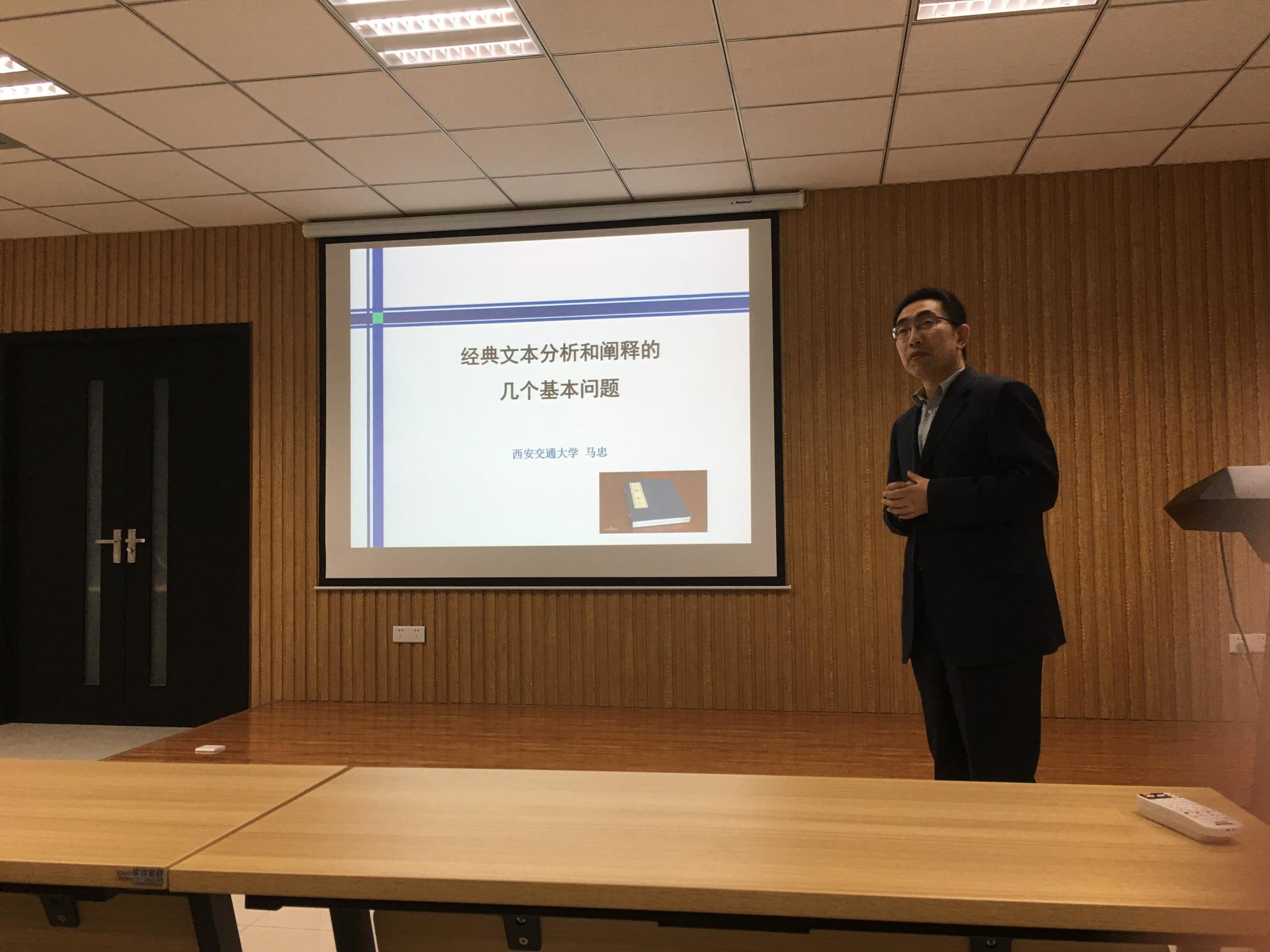 本次论坛主题为“经典文本分析和阐释的几个基本问题”。马忠教授认为,经典文本分析和阐释作为治学的基本方法,应该受到广泛关注。马忠教授从经典文本阐释的基本概念、历史由来入手,呼吁关注文本言语中心论的局限性、文本的开放和无限性、对经典文本的价值赋予和视界融合等问题,说明了阐释是经典文本的存在形态。他提出,对经典文本的阐释应遵循几个基本原则:原点性,从经典原文切入,探究文本深层意义;理论性,寻找经典文本中的元命题;整体性,注意文本群的整体性和对批判对象的研究;文化性,要从文化境遇与背景中去理解经典文本,并灵活地加以应用。马忠教授还以《论语》为例,以走近文本—融入文本—建构文本的逻辑对中华经典文本《论语》进行了精彩的分析和阐释。他在讲座中引经据典,再现多个人物的对话和活动的历史场景,使《论语》中众多的人物形象更加鲜活生动,给听众留下了深刻的印象。马忠教授语言诙谐幽默,讲座引发了在座师生们的共鸣,气氛非常热烈。最后,结合马克思主义理论学科的特点,马忠教授与大家分享了经典文本阐释学的理论价值和现实价值,他指出应该在研读马克思主义经典原著的过程中发展马克思主义阐释学,并不断探索文本阐释教学法。