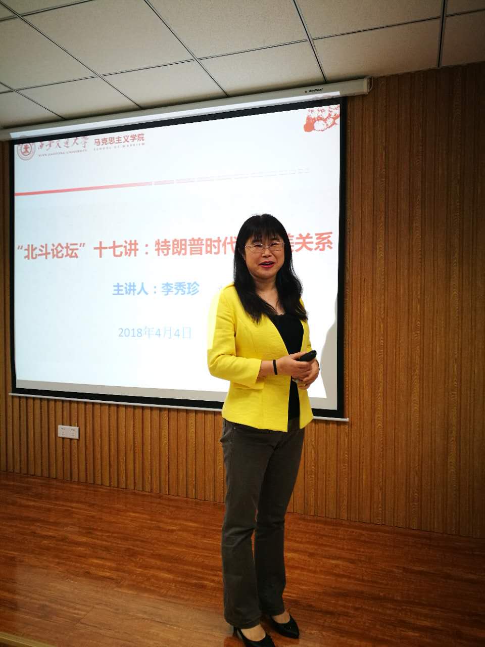 针对本次论坛的核心内容:特朗普时代的中美关系。李秀珍教授从政治外交和经济发展两方面对中美关系进行了解读。李教授指出,三岛链、一带一路、四方联盟等国际战略布局和机制的存在使得中美之间的结构性矛盾难以化解,贸易战只是这种结构性矛盾的反映和表现形式之一。李教授明确表示,面对美国的施压,中国应准备适度的保护措施和反击措施,同时致力于改善国内环境,渡过改革的深水区,打赢改革攻坚战。归根结底,中国不是要与美国一争高下,而是必须与自己一争高下,在关键指标上不断突破自己的历史水平,在此基础上更好地应对来自外部的种种挑战,才能在未来中美关系博弈过程中占据更有利的位置。