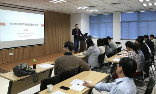 本次学术报告题为“马克思哲学开端的现象学诠释”。杨栋博士首先指出,开端、原理和原因等概念均源于古希腊的arche(始基、本原)概念。以《联共(布)党史简明教程》第四章第二节《论辨证唯物主义和历史唯物主义》为摹本的现行《马克思主义基本原理》教科书将马克思哲学的开端理解为某种唯物主义,这种唯物主义认为,“世界的本原是物质”、“世界统一于物质”。但这种理解在西方哲学史背景中不足以支撑马克思哲学的独特性。历史地看,作为一种现代西方哲学,马克思哲学的独特性首先体现在对柏拉图-黑格尔传统的西方本体论哲学的批判中;其次,马克思哲学的独特性还体现在它从变革传统西方哲学的“理论-实践”关系入手,重新赋予实践概念以新的内涵,从而以广义的实践,即人的社会性活动为哲学开端。在这种实践概念中,不仅规定了人的生存方式(劳动),而且规定了与劳动这种人类生存方式相应的世界之所是(物质/质料),从而避免了离开人的存在方式而谈论世界的传统哲学范式。在此意义上,“唯物主义”的本质也不应当被理解为,主张一切都是质料,而应被把握为,对一切存在者都表现为劳动的材料的规定。