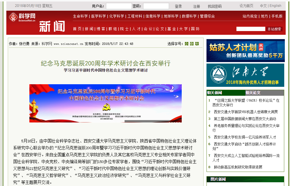 5月16日、18日,《中国社会科学网》两次报道学术会议