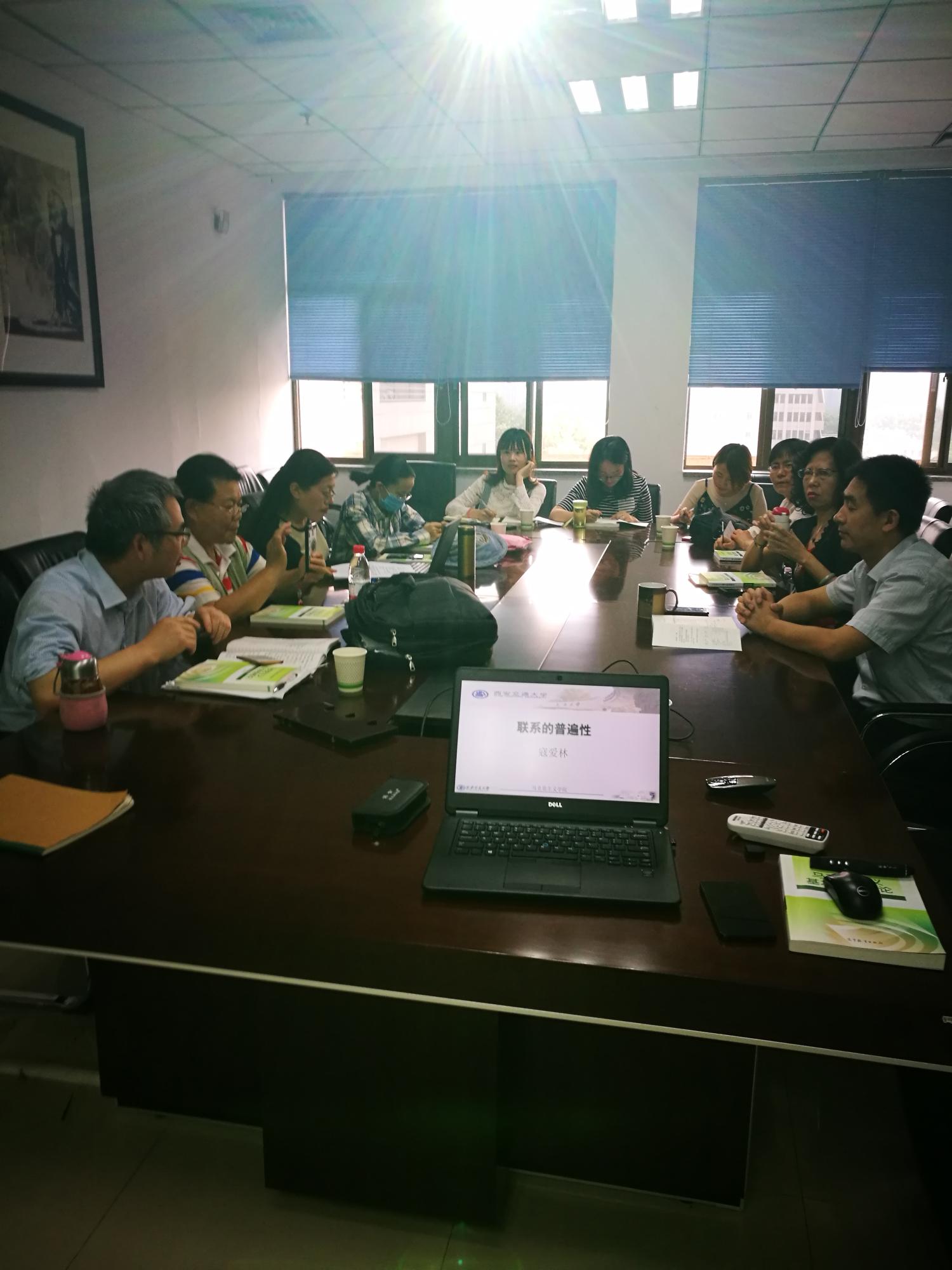 集体备课的第一个环节是教学研讨活动。寇爱林副教授以“联系的普遍性”为题进行了精彩的示范教学,他从普遍联系的视角深刻阐释了“人类命运共同体”思想的哲学意蕴。燕连福院长从教学内容、教学设计等方面对教学活动进行了精辟的点评,陈建兵副院长从突出教学重点、体现教学亮点等方面提出了建设性的意见。具有丰富教学经验的王宏波教授结合自身对教学规律的长期研究从思政课教学“学理、政理、事理三理贯通”的理念出发,既对寇老师的教学提出了改进的思路,也给所有在座教师很大的启发。老师们还从案例引入、PPT设计、讲授技巧等方面展开了热烈的讨论和交流。