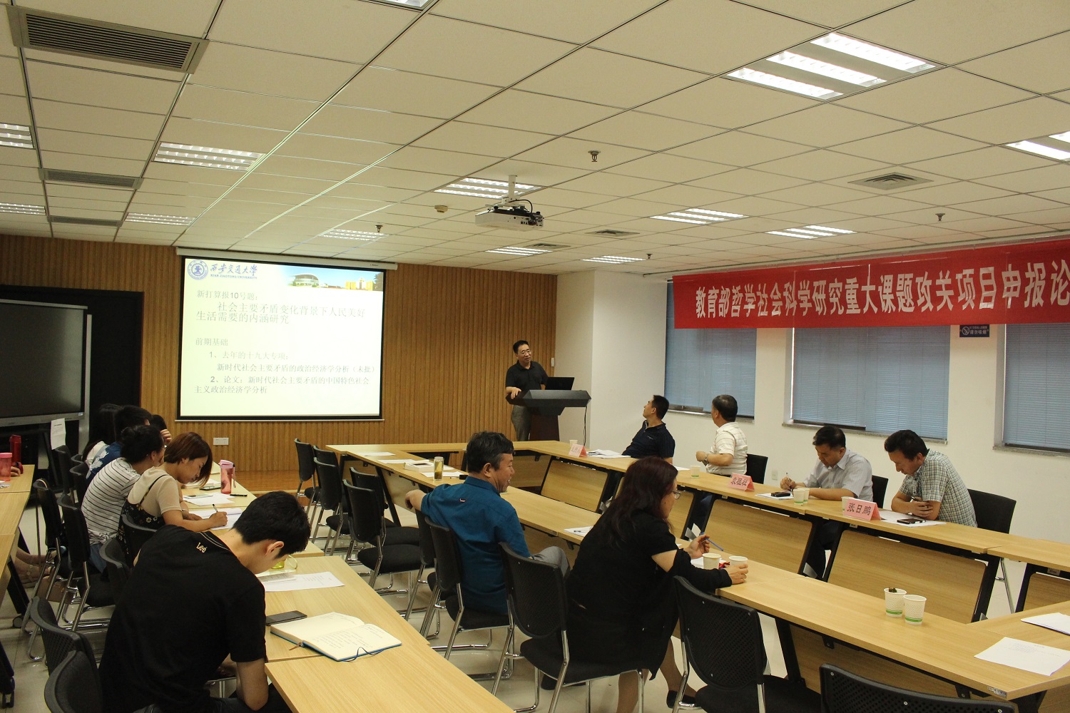 参与2018年度教育部哲学社会科学研究重大课题攻关项目申报的教师先后用10分钟左右的时间从选题依据、文献基础、研究对象、主要观点、重点难点以及创新之处等对课题进行了陈述。三位专家针对每一课题从项目选题、研究背景、内容结构进行了剖析、评点,并提出了专业的指导和建议。
