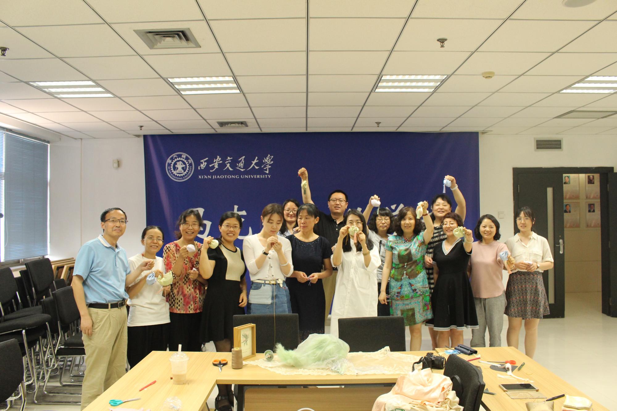 学院的老师们踊跃报名参加,约20多位教师参加此次活动参加,几位男教师也积极参加,活动现场欢乐热闹,女老师们巧手制作裁剪,男老师们也不甘示弱,指导老师手把手给老师教,老师们在紧张的教学工作之余,充分体会到手工制作的快乐,在缝制活动中还评选出了巧手、能手,老师们用满满的爱心缝制了一个个精致香包,赐福家人,祈祷安康。