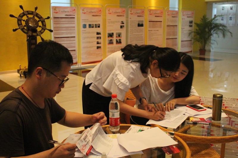 全国优秀大学生夏令营的同学们陆续抵达,在学院工作人员的热情指引下进行登记、领取夏令营物品,完成报名后各分组负责人将同学们送至崇实书院办理入住手续。