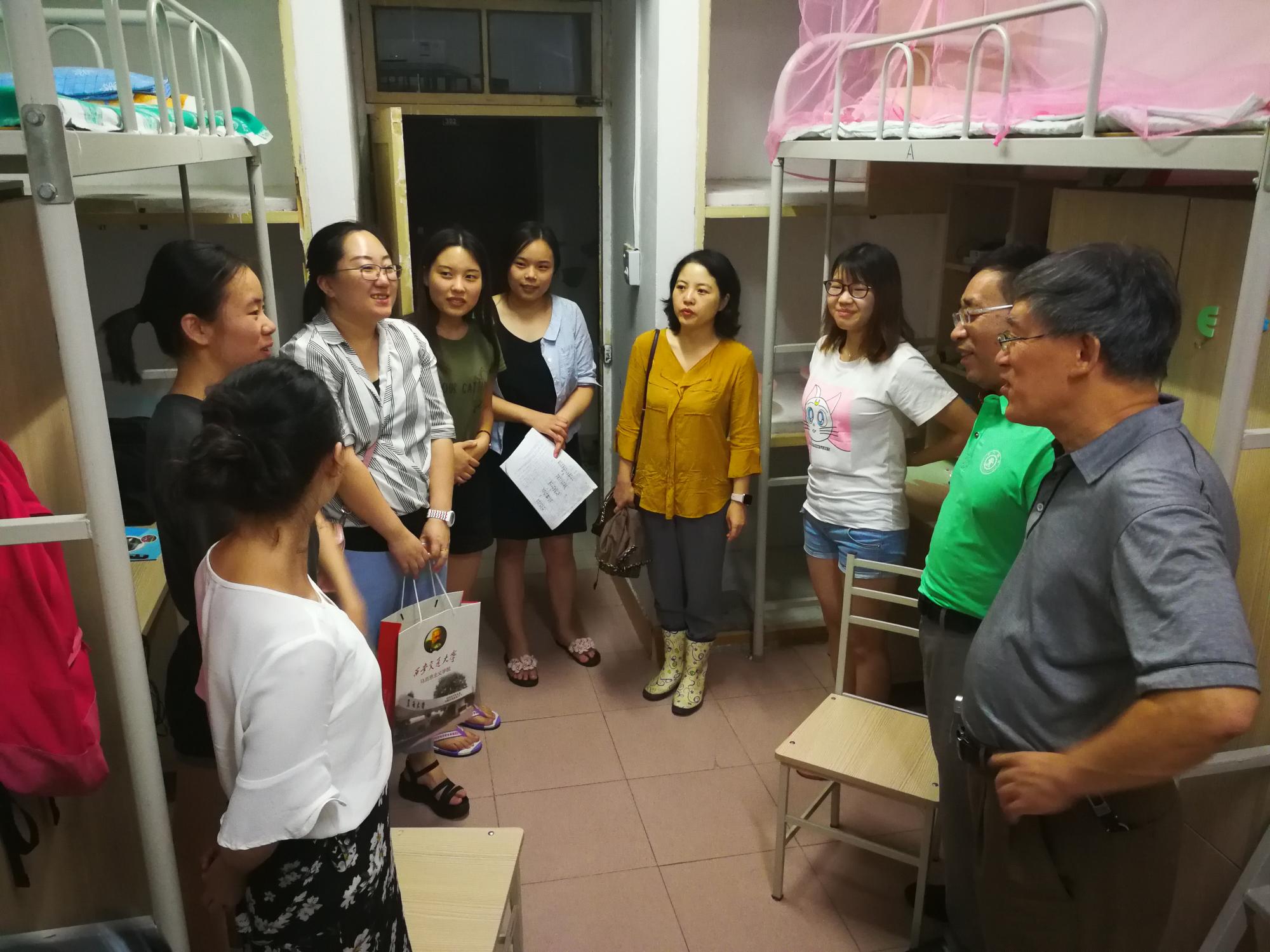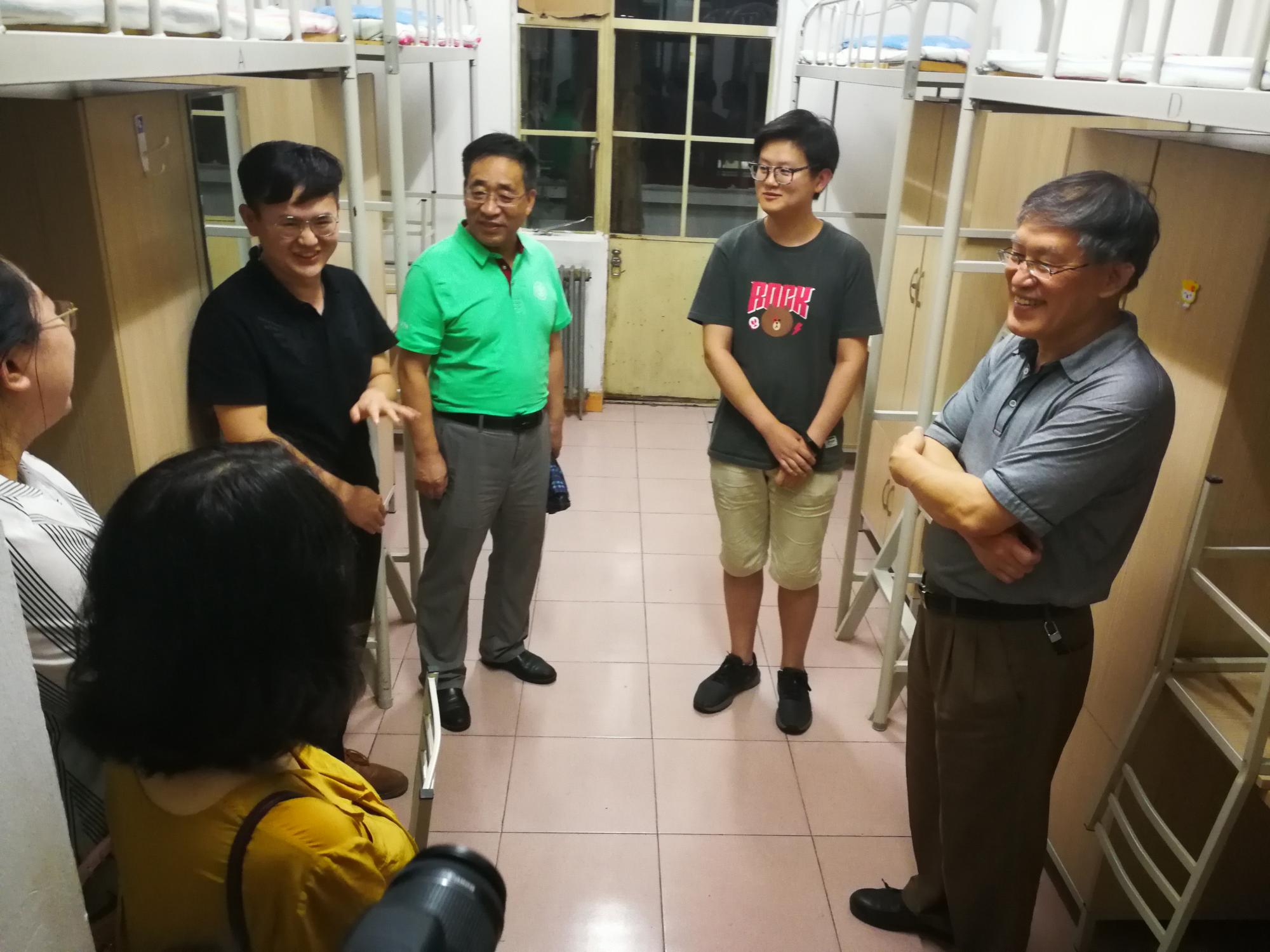 的教师们前往崇实书院看望夏令营的同学们。宋书记和刘院长在寝室亲切地与学员们交谈,对于学员的个人情况、是否适应学校的环境,饮食是否习惯等主义询问,并叮嘱同学们一定要在夏令营期间注意安全、照顾好自己。