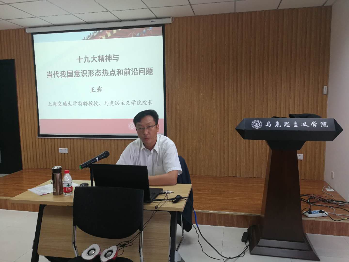 院长王岩教授作了题为“十九大精神与当前我国意识形态热点和前沿问题”的讲座。燕连福院长主持本次报告会,学院50余名师生参加了本次讲座。