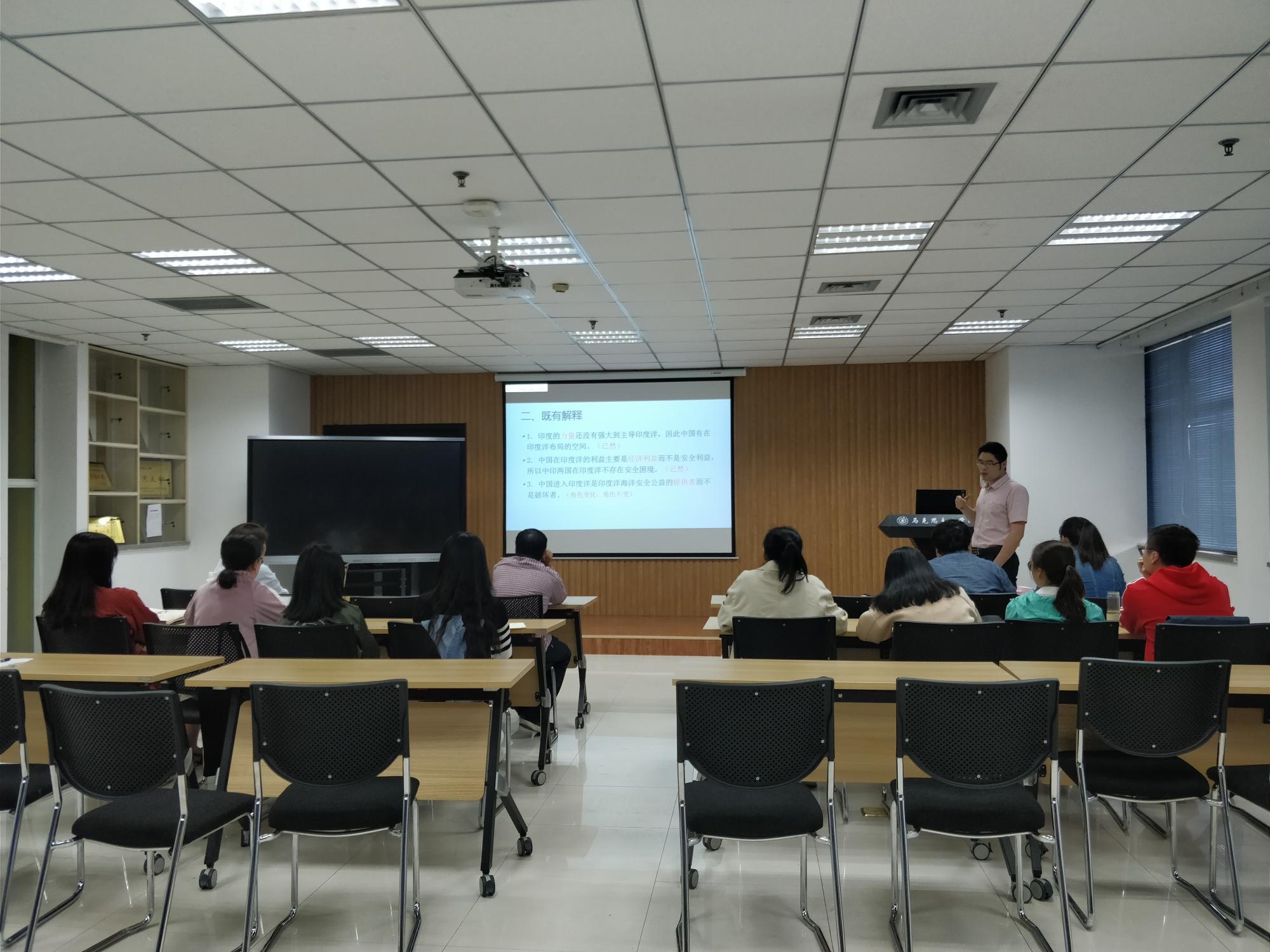 思政所新讲师李家胜博士以他在《世界经济与政治》期刊上发表的“印度洋相遇——印度应对中国进入印度洋的行为逻辑”一文为例,为大家分享了他的研究心得。他从提出问题、文献综述、提出解释框架、设计研究假设、进行案例验证、提出研究发现和政策启示等步骤讲述了他的研究。李家胜老师对于社会科学研究也谈了自己的几点看法,他认为社会科学研究起源于重复出现的现象,要注重揭示这些现象发生的规律,做研究是一个不断否定他人并且否定自己的过程。
