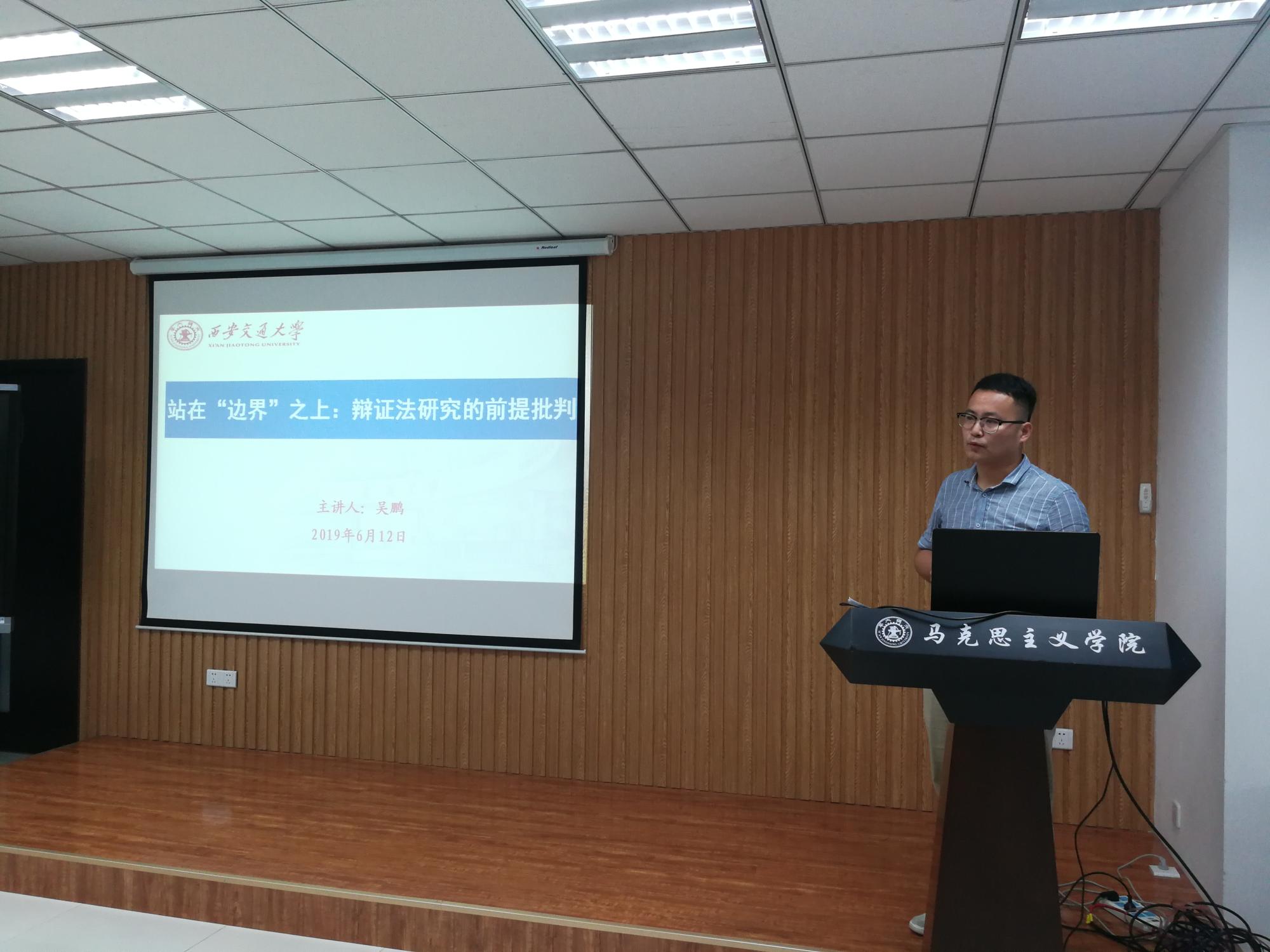 报告伊始,吴鹏博士结合自己的学习经历、研究兴趣和问题本身的重要性,对此次论坛主题的拟定做出了说明,并且重点强调了“前提批判”在理论研究过程中的意义和价值。他认为,“前提批判”的对象就是我们在理论研究过程中所形成的一些看似天经地义的和毋须反思的思想前提,这些前提决定着我们对于问题本身的理解和把握;“前提批判”的目的就在于打破既有的思想前提对于理论研究的约束和限制,继而为问题本身重新划定合理的“边界”,以此推动思想解放和观念更新。