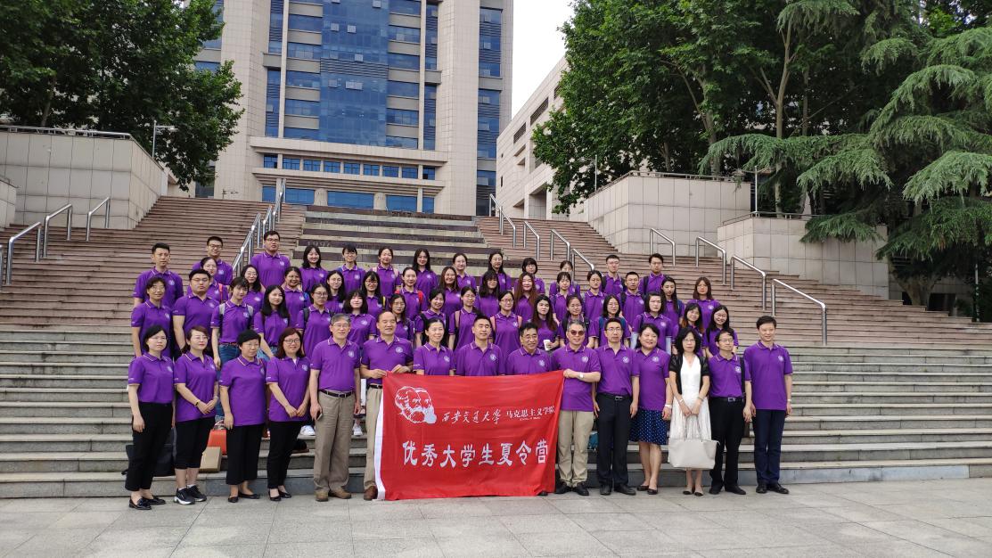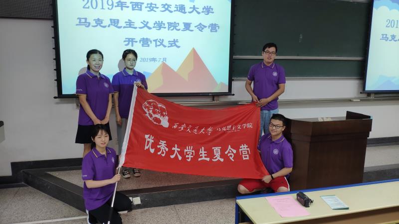 韩豪杰、西南大学张权、兰州大学杨心怡、西北农林科技大学周钰婷等4位同学高举营旗,将活动推向高潮。营旗仪式后师生一起合影,统一着装的夏令营服师生合影照留下了美好的记忆。