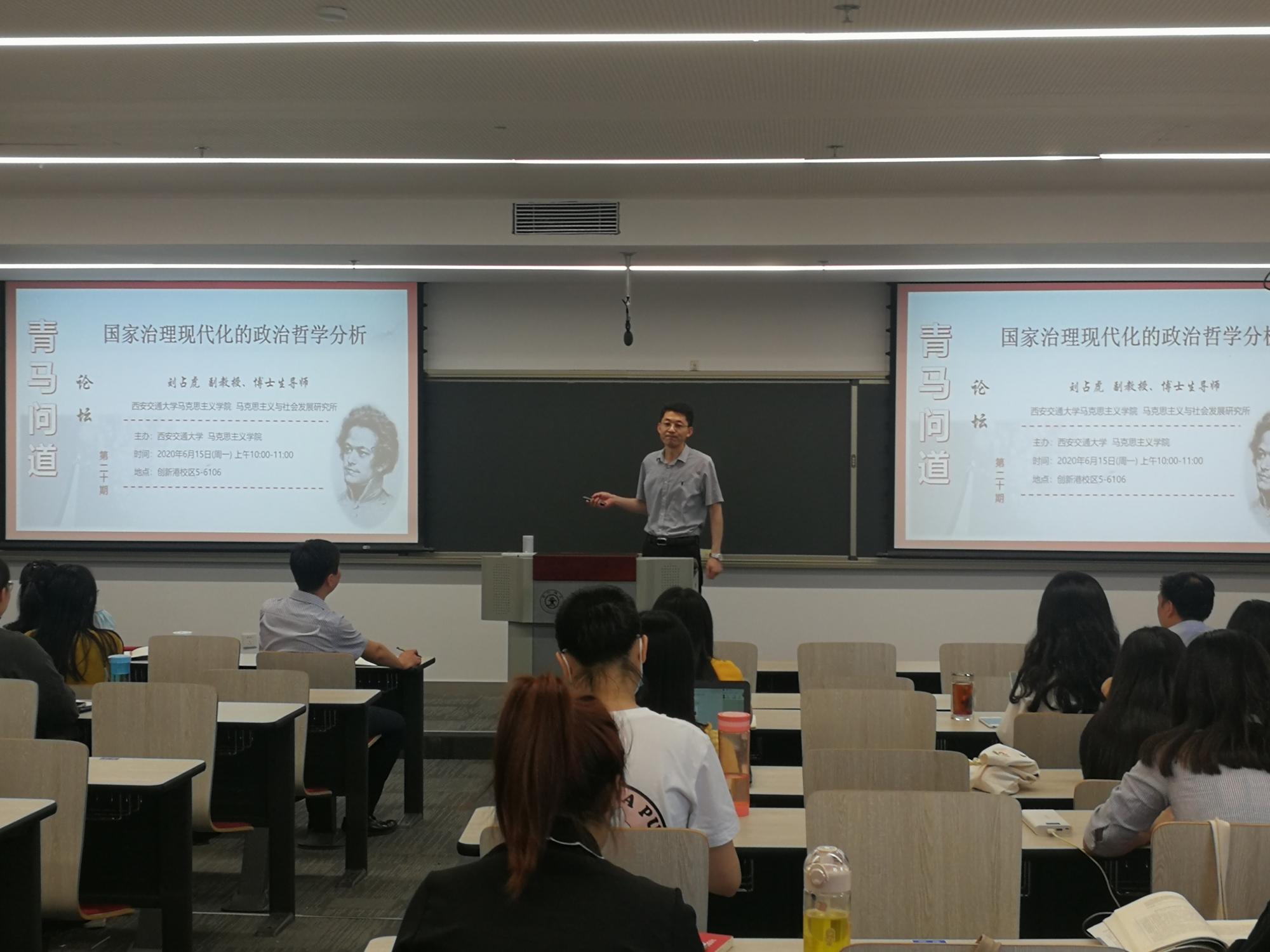 6月15日上午,第二十期“青马问道”学术论坛在创新港涵英楼6106举行。本次论坛的主题是《国家治理现代化的政治哲学分析》,由马克思主义与社会发展研究所副教授、博士生导师刘占虎主讲。论坛由学院副院长韩锐主持,学院部分教师及研究生聆听了报告。