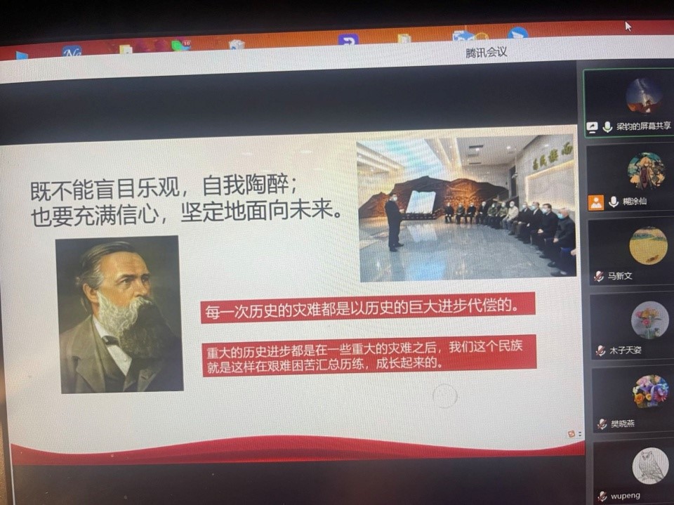 马原理课程组以腾讯会议方式召开集体备课会,马原理研究所召开期末总结会,会议由马原所副所长范玉仙主持。