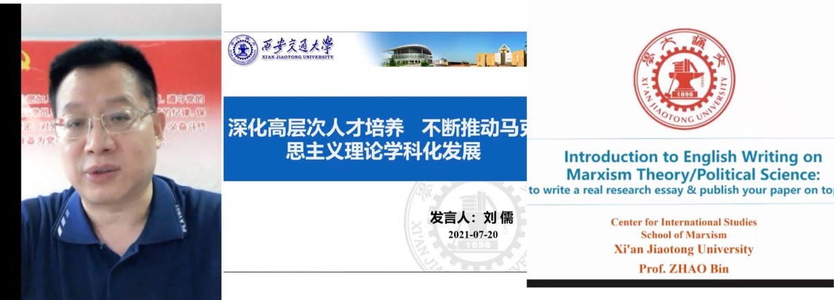 刘儒教授、赵斌教授分别作了题为“中国共产党的百年历程与辉煌成就”“深化高层次人才培养,不断推动马克主义理论化发展”“研究规划与设计——以马克思主义国际问题研究为例”的报告。崔教授围绕中国共产党百年历史的四个时期划分、四个伟大成就和四个庄严宣告,精彩解读了习近平总书记在庆祝中国共产党成立100周年大会上的讲话。刘儒教授认为新时代是马克思主义理论学科发展的重大机遇,要大力培育马理论学科的科研生长点,提高学科整体研究水平,提升学科学术影响力。赵斌教授提出要关注学科前沿,拓宽学术视野,重视国外一手文献,并分享了英文论文写作的经验。三场报告主题鲜明、视野开阔、贴近实际,令营员们深受启发、获益匪浅。学者讲坛环节由副院长陈建兵教授主持。