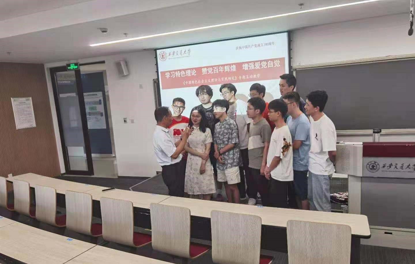 在隆重庆祝中国共产党建党100周年的重要日子里,中国特色社会主义理论与实践研究课51班于7月1日在涵英楼5043教室成功的举行了“赞颂党的百年辉煌成就,学好中国特色社会主义理论,增强新时代大学生爱党信党跟党走的自觉”互动交流会。这次交流会是整个中国特色社会主义理论与实践研究课的重要环节。