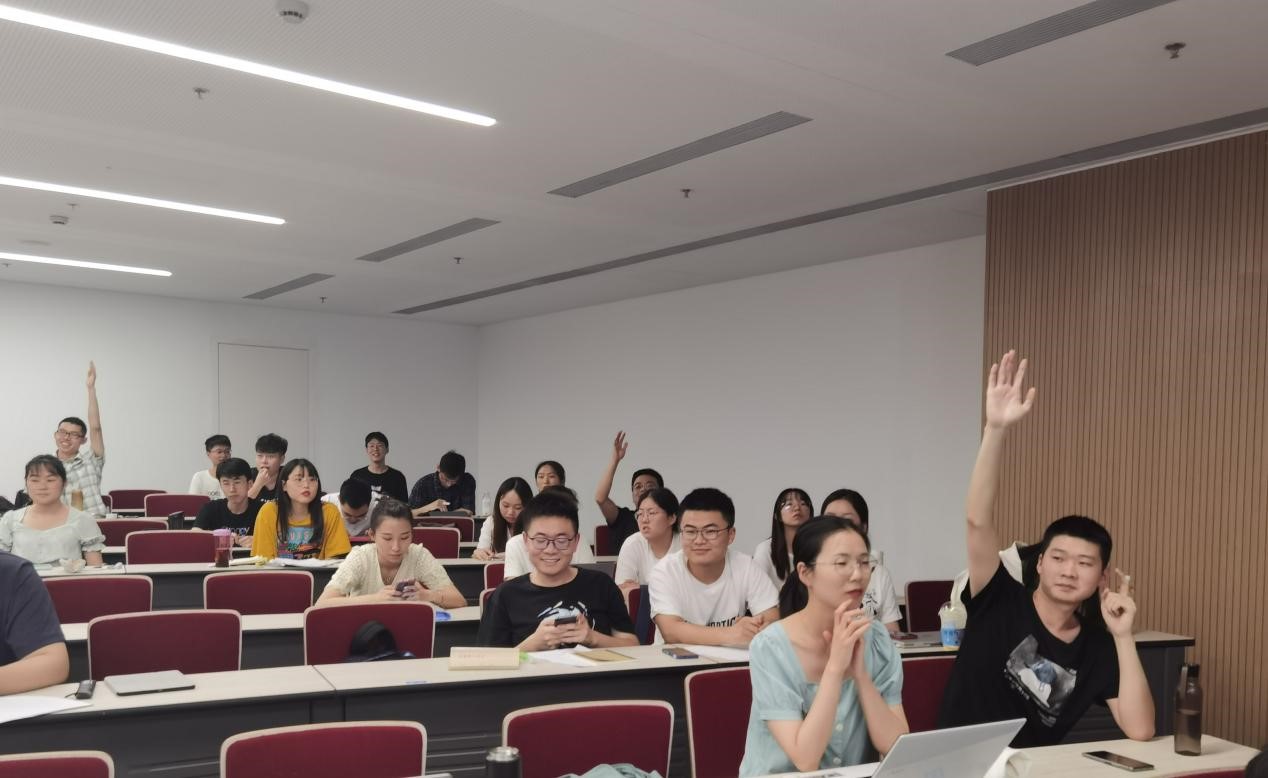 革命家书诵读环节结束后,进入党史知识竞赛环节。党史知识竞赛聚焦党的发展历程、思想理论、精神谱系,通过有奖竞答环节的精心设计,巩固课堂所学理论知识。老师们轮流主持问题,同学们全神贯注,积极抢答,答对时现场响起阵阵掌声,答错时,同学们争先补答,直到答对为止,现场气氛活跃热烈,充分展示了同学们对党史知识的扎实储备和对中特课堂的喜爱。来自新闻与新媒体学院的赵睿妮同学表示此环节印象最为深刻,“党史竞答别开生面、生动有趣,达到了全场气氛的高潮,大家的积极性被充分调动起来。选择题的抢答环节由于竞争激烈最后改为了填空题,同样也难不倒平时积累良多的同学们。”中特49班的王道成表示,“在这一环节老师和同学的互动特别幽默风趣,很好的调动了现场的气氛,同学们也十分积极,大家都放得很开。通过这个活动,我深刻感受到了大家了解党靠近党学习党的行为,是日常的,是积极而自主的,让我大受震动。”