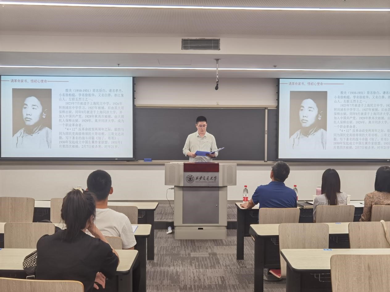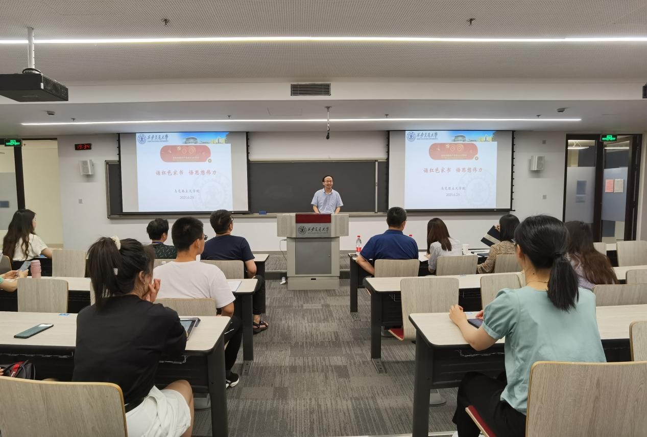 田建军老师作为组织者和主持人,介绍了本次活动的流程及意义,并对活动寄予厚望。他在开场指出,本次《中国特色社会主义理论与实践研究》课程特色实践活动主要包括革命家书诵读、党史知识竞赛、优秀学生颁奖三个环节。学院开展“庆建党百年,诵红色家书,悟思想伟力”主题活动,目的是帮助大家深入理解“中国共产党为什么能,马克思主义为什么行,中国特色社会主义为什么好?”从而增强学生对中国共产党和中国特色社会主义道路、理论、制度、文化的认同,激发学生愿意为中华民族的伟大复兴努力奋斗的信念。革命家书是中国共产党人对民族、对国家、对亲友、对前途最真挚的情感表达,通过此次活动,让学生自主学习革命家书,切身感悟革命先辈的理想信念与家国情怀,从而实现思政课程立德树人的教育目标。