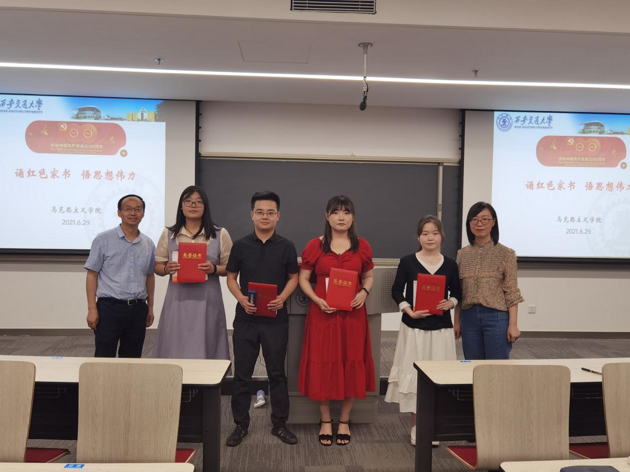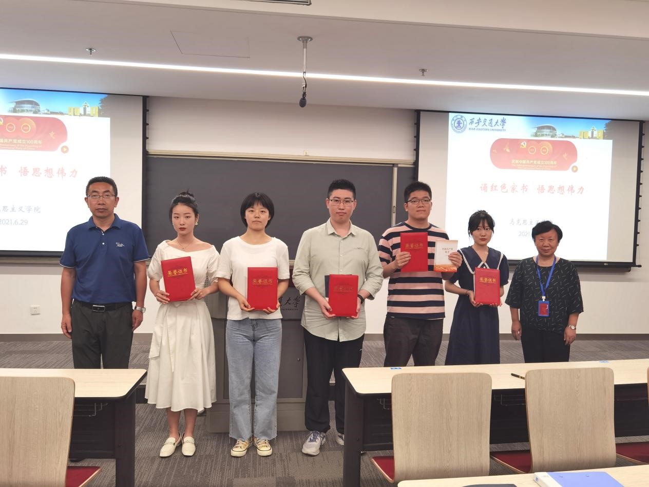 经过激烈的角逐,老师们评选出诵读革命家书活动一等奖5名,二等奖8名,三等奖10名。王镜茹、赵睿妮、张畅、孙文凯、李翘楚获得本次诵读活动竞赛一等奖;董常熠、王道成、郑翅、马潇雅、李佳轩、李子龙、肖湘湘、吴进超获得二等奖;王梦瑶、张幸梓、孙泓、杨卓瑾、刘站忠、姜殿强、谢万明昱、梁子、丁人一、李小倩获得三等奖。马忠副院长、雷巧玲老师、刘源老师、冯峥老师、曹芳老师和田建军老师分别向获奖同学颁发奖品和证书,活动在《没有共产党就没有新中国》的歌曲合唱中落下帷幕。