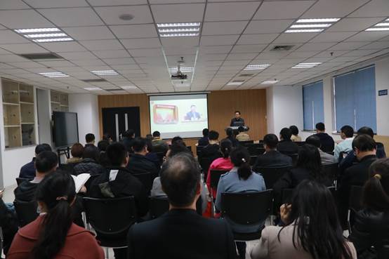 党史学习教育专家宣讲团成员梁军教授受邀作党史学习专题讲座。人文学院全体教师党员参加学习活动。