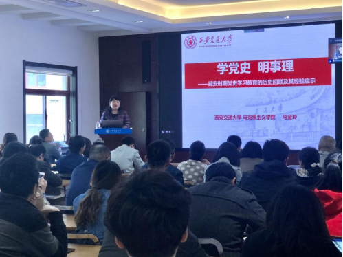 马金玲为全院师生党员做党史学习专题报告“学党史明事理”。马金玲老师首先带领大家再次深入学习了习近平总书记在党史学习教育动员大会上重要讲话精神,并用丰富详实的案例带领大家回顾了延安时期党史学习教育情况。她表示,延安时期的党史学习教育帮助干部和党员了解党史、分清两条路线,统一了全党思想,为七大的胜利召开、抗战胜利和中国革命的胜利都奠定了政治基础、思想基础和干部基础。同时,马金玲老师系统讲解了现阶段开展党史学习教育的必要性和重要意义,强调党史学习教育是党的思想建设的重要手段,是明辨事理分清是非的利器,要通过党史学习增强政治自觉、掌握历史主动。