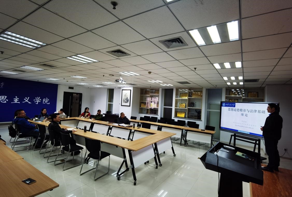 青年教师李家胜围绕《思想道德修养与法律基础》教材中绪论的相关内容,进行了课程展示。李家胜老师紧密结合学生实际,从“你是谁”“你在哪”“从哪来”三个问题导入,具体围绕新时代意味着什么、青年的时代使命、青年要成为什么样的人进行了分析。各位老师就课程导入、课堂有效提问、理论深化以及ppt的美化问题热烈讨论,提出了不同的建议。通过集体备课会的学习与讨论,进一步提升了全所教师对“做担当民族复兴大任的时代新人”这一主题的认识。