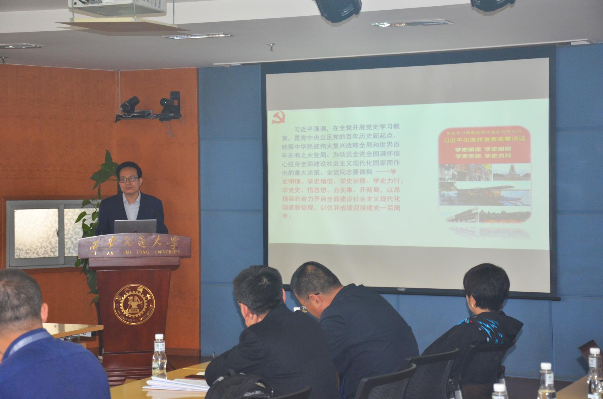 党史学习教育专家宣讲团成员梁军教授受邀作党史学习专题讲座,校党委副书记赵昌昌,校党委常委、统战部部长张定红,机关与直属单位党委委员、纪委委员及各党支部书记参加,会议由机关与直属单位党委副书记、招生办副主任吴梦秋主持。