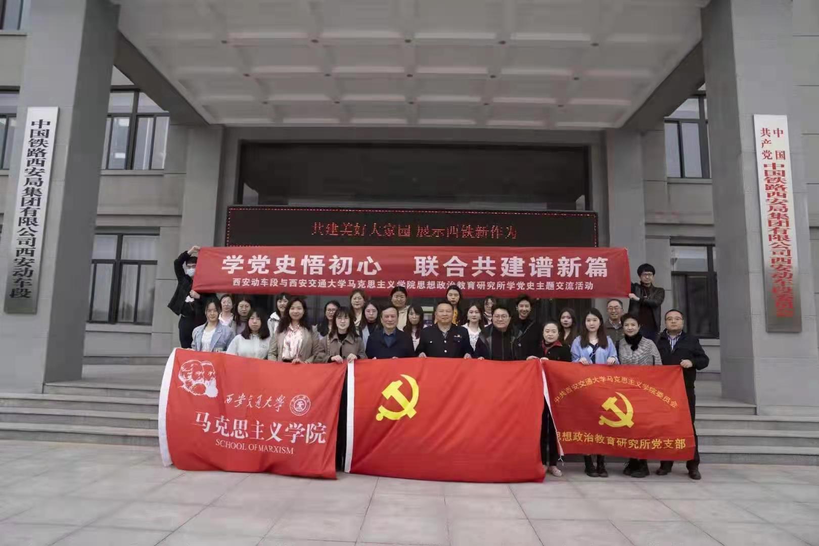 行政党支部、硕9114党支部前往西安动车段参观交流,举行以“学党史悟初心、联合共建谱新篇”为主题的党日活动,思政所党支部与西安动车段西成运用车间党总支签订合作共建协议。