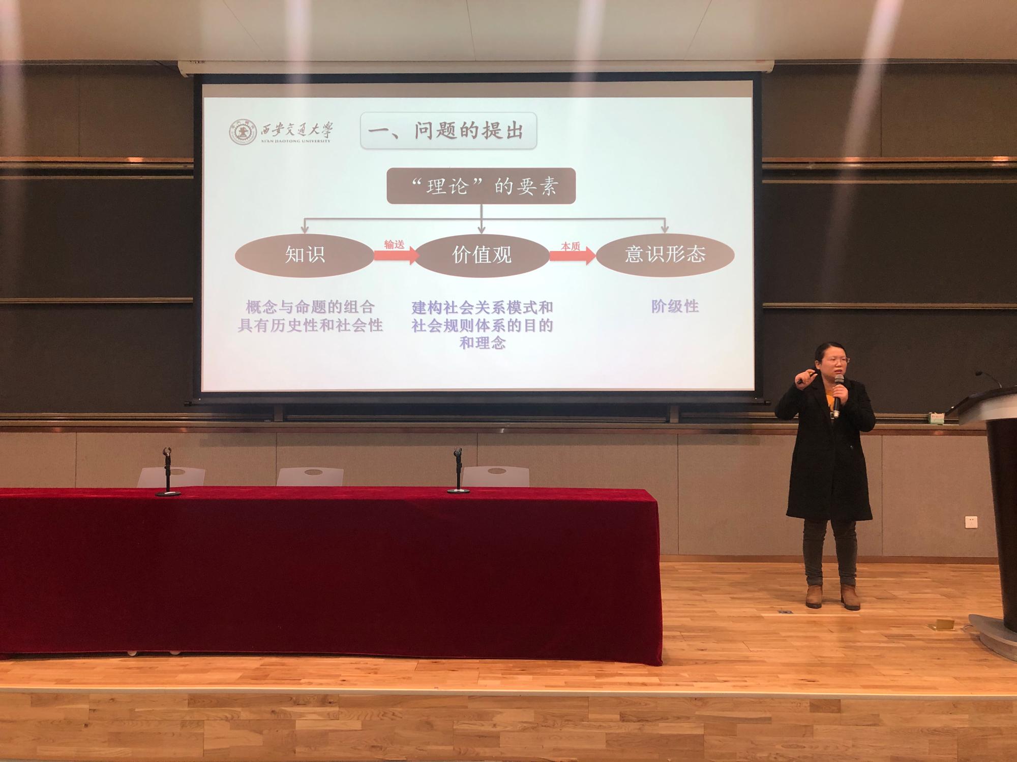 首先,李娟老师以“知识——价值观——意识形态”为阐释线索,剖析了“西方宪政理论”产生的本质,并从理论要素、合理贡献、逻辑问题、适用条件和合理价值五个方面分析了社会契约论的合理贡献与逻辑问题。她认为,一方面,资本主义社会契约论为反对“君权神授”的封建专制,主张人性解放、私有制市场经济发展提供了价值指导。另一方面,社会契约论只在横向层面对商品平等交换关系加以阐发,忽视了纵向层面阶级统治的不平等关系,进而掩盖资产阶级国家的本质。与此同时,李老师运用大量生动形象的案例,为大家详细解释了社会契约论的合理性和局限性。此次讲座内容丰富、逻辑性强、信息量大,令人获益匪浅。本次学术活动在热烈的掌声中圆满结束。