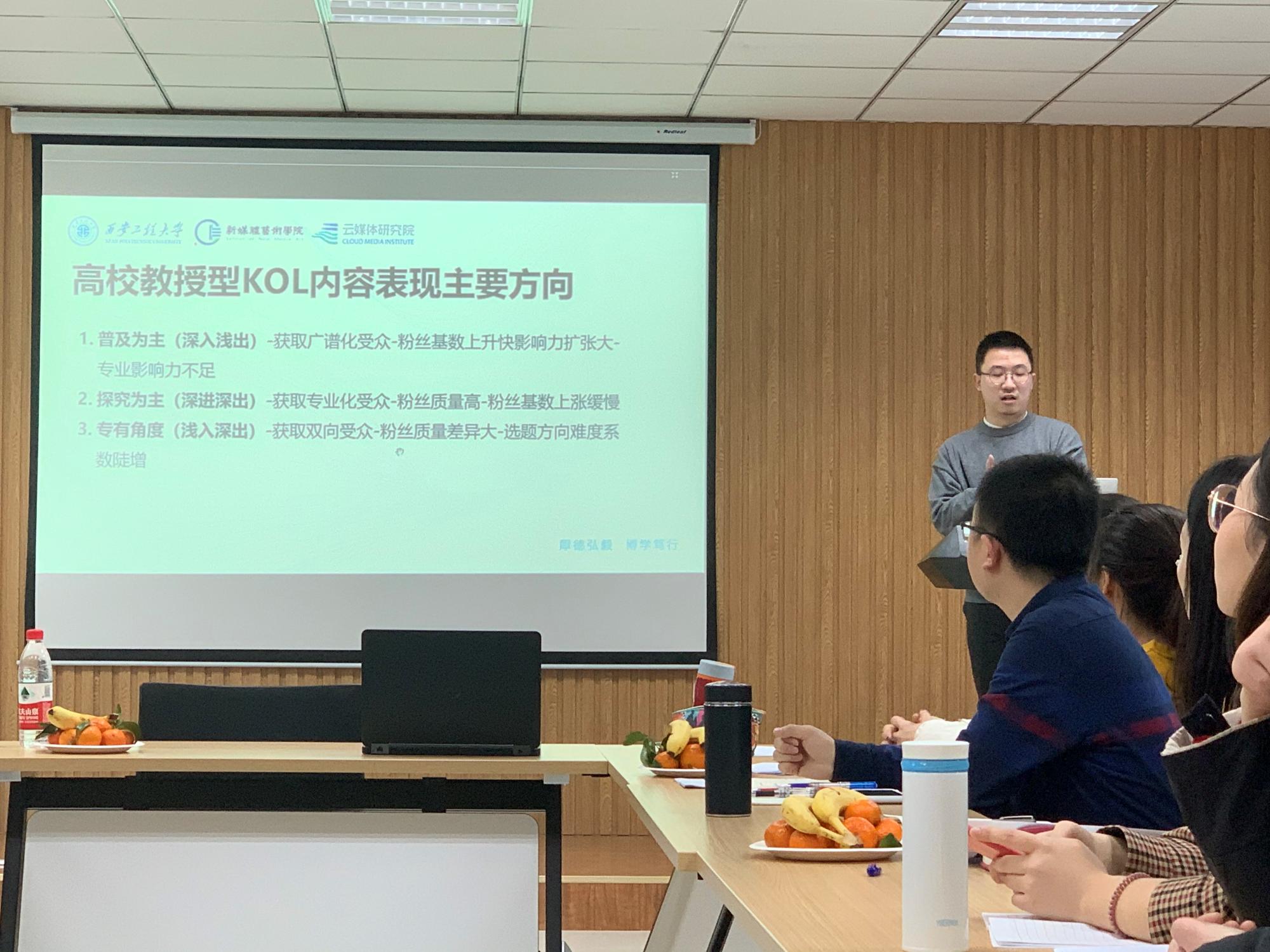 刘晓斌,资深媒体人、陕西广播电视台主任记者、自媒体益读社创始人、inK人传媒创始人、新媒体传播、网络舆情引导、新闻宣传专家。1996年从事新闻工作,曾担任陕西广播电视台《今晚播报》制片人。2006年起参与筹办西部网,任西部网副总经理。曾三次获得中国新闻奖,数十次获得省级新闻奖。被西北大学、西北政法大学、西安外国语大学、欧亚学院等高校聘为兼职教授。刘晓斌老师建议厘清公众号的方向、用户对象、侧重点等方向性问题,建议李永胜教授工作室公众号为深度思考的用户服务,影响有影响力的人、有思想的人、有决策力的人;同时为与会老师和同学分享了自己在运营公众号过程中的经验。