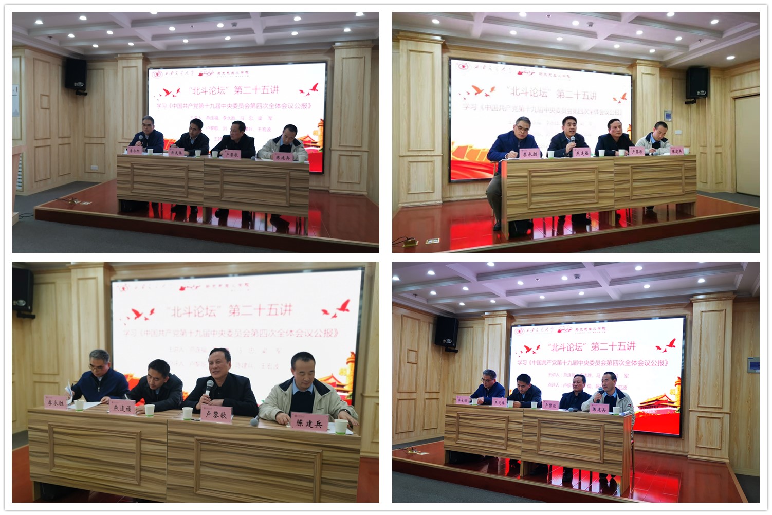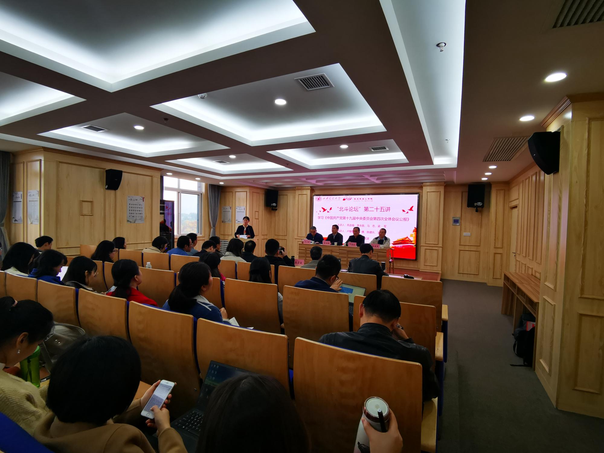举办第二十五讲“北斗论坛”,学习《中国共产党第十九届中央委员会第四次全体会议公报》,由燕连福、马忠、李永胜、梁军四位教授作主题发言,王宏波、卢黎歌、刘儒、陈建兵四位教授作专家点评,深入学习党的十九届四中全会精神。 色情影片