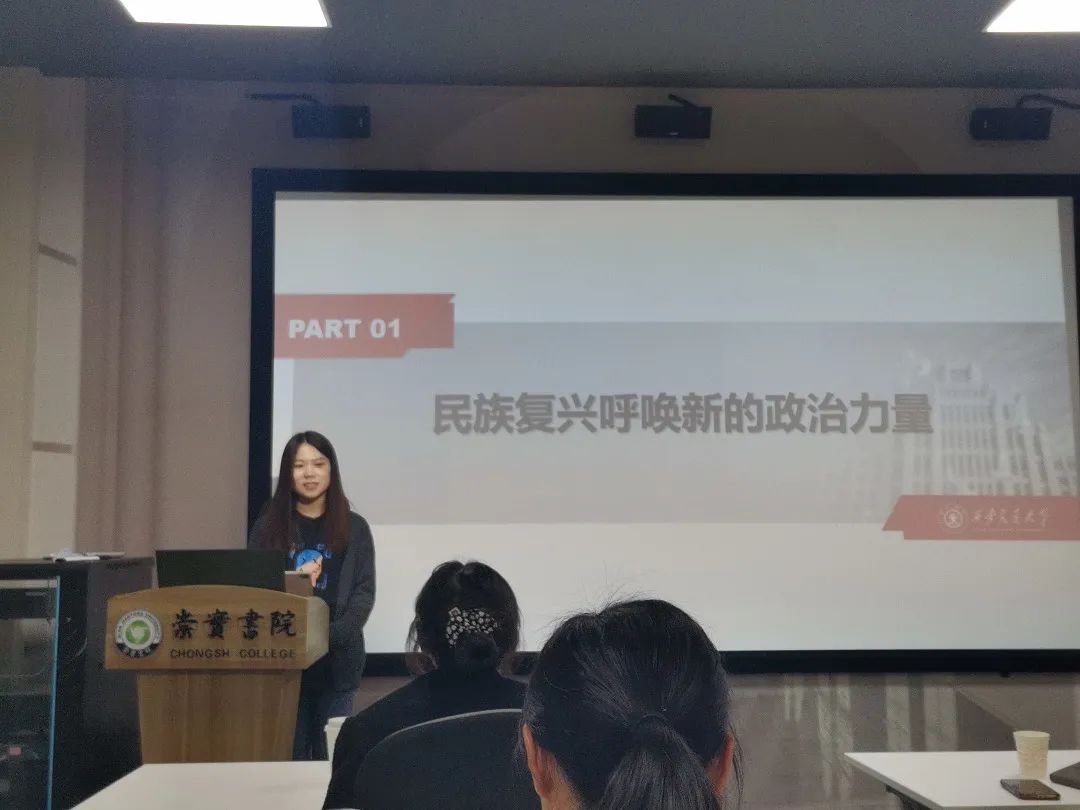 马理论专业的陈卓同学也从写作背景、主题内容和现代启示三个层面为同学们精读了《毛泽东选集》中收录的《湖南农民运动考察报告》。通过具体实例,详述了当时党内存在的意见分歧、党对农民革命力量判断的流变历程等,并从农民运动的正义性、主体性、有效性角度,极力讴歌中国农民阶级对中国革命的卓越贡献,展现了以毛泽东为主要代表的中国共产党人重视调查研究、坚持群众路线的优良传统。
