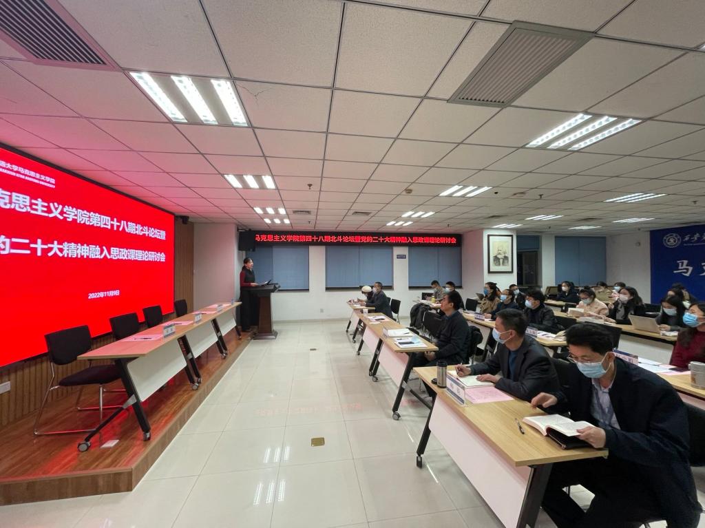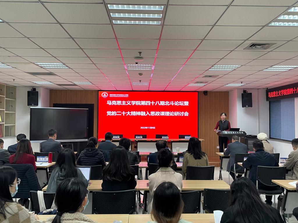 第四十八期“北斗论坛”暨党的二十大精神融入思政课理论研讨会在主E505会议室举行。 色情影片