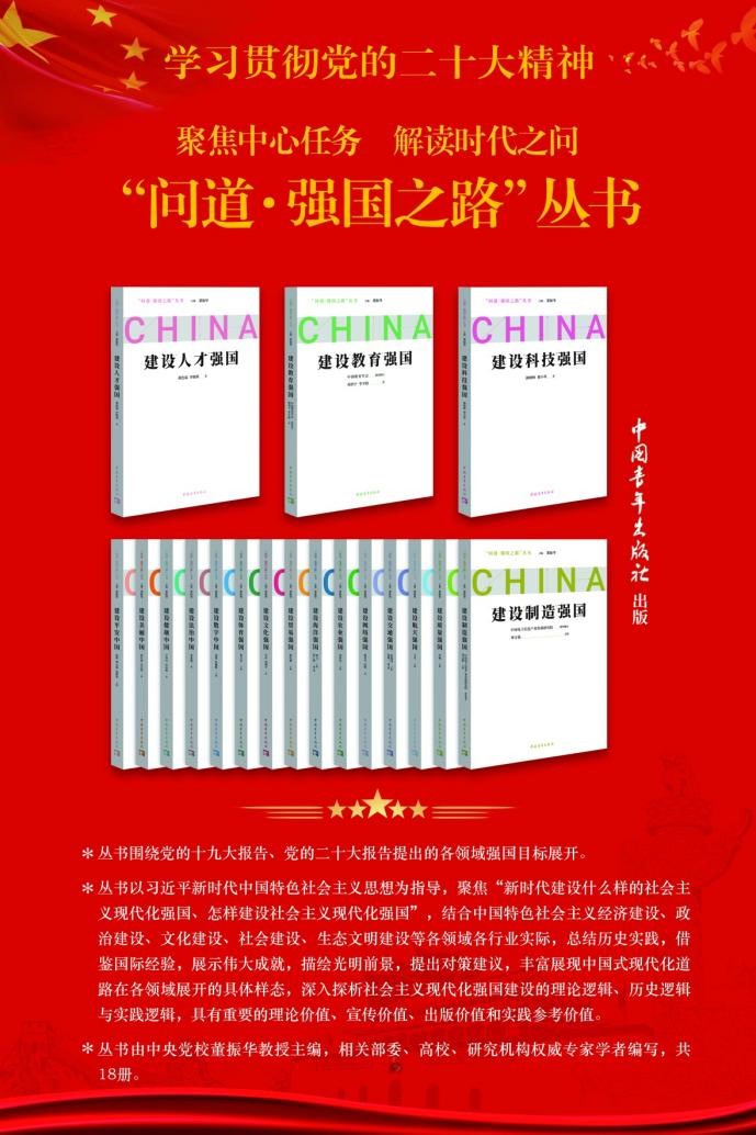在党的二十大胜利召开之际,由中央党校哲学教研部副主任董振华教授主编的“问道·强国之路”系列丛书(共18册),在中国青年出版社隆重出版。该系列从书以习近平新时代中国特色社会主义思想为指导,聚焦“新时代建设什么样的社会主义现代化强国、怎样建设社会主义现代化强国”,结合中国特色社会主义经济建设、政治建设、文化建设、社会建设、生态文明建设等各领域各行业实际,总结历史实践,借鉴国际经验,展示伟大成就,描绘光明前景,提出对策建议,丰富展现中国式现代化道路在各领域展开的具体样态,深入探析中国式现代化的理论逻辑、历史逻辑与实践逻辑,具有重要的理论价值、宣传价值、出版价值和实践参考价值。 色情影片