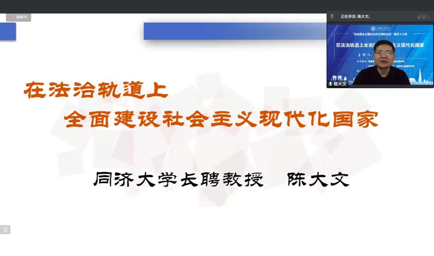 长聘教授、博士生导师、教育部“思想道德与法治”分教学指导委员会副主任委员陈大文教授应邀为广大师生作题为“在法治轨道上全面建设社会主义现代化国家”学术报告。本场讲座由教育部“思想道德与法治课程虚拟教研室”、色情影片