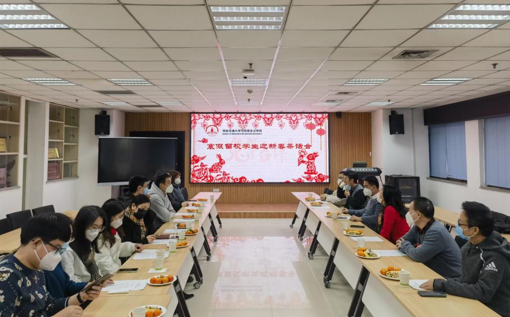 召开迎新春茶话会慰问学院留校研究生和本科生,院党委书记苏玉波、院长燕连福等学院班子成员,崇实书院相关负责同志,本科生班主任以及学院党委组织员、教学秘书、辅导员等与留校学生欢聚一堂,向同学们致以新春的问候与祝福。